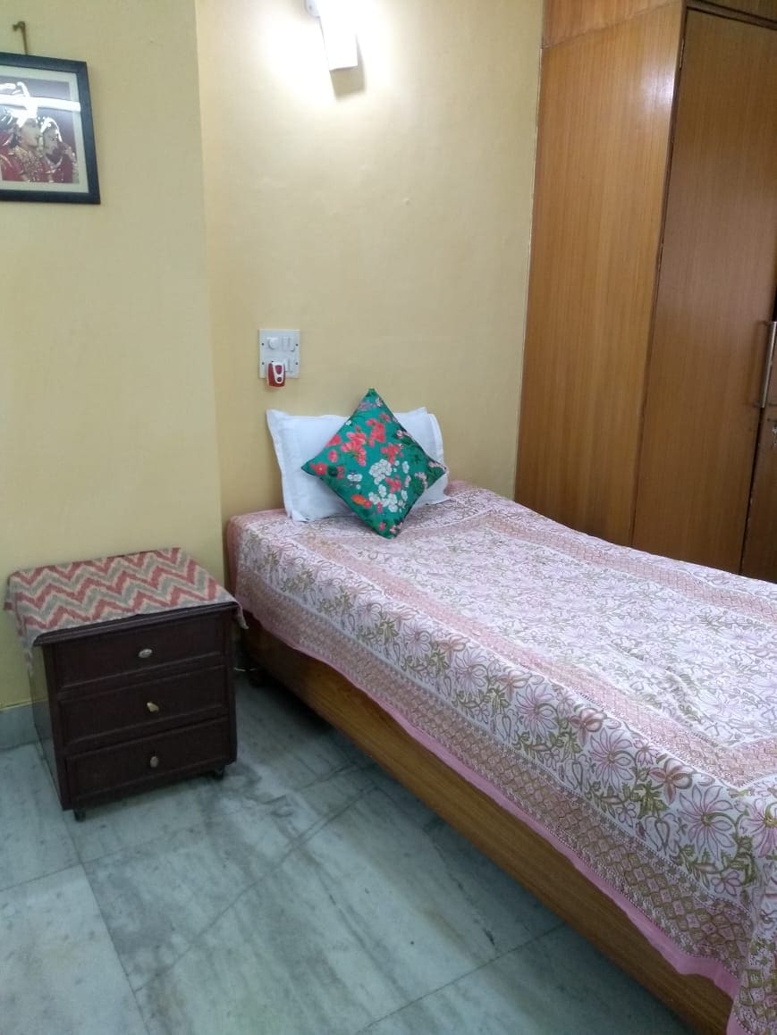 Classy Luxurious Trendy Private 1BHK Home with 1 room,1.washrooms, 1 powder room, Living Room & Kitchen w/d Balcony on Upper GF(with lift) in Posh Residential colony M-Block,Greater Kailash 1. The Spacious Living room has a Sofa/Diwan Bed for 3rd & 4th guest sleeping. The kitchen is equipped with all appliances, stove, utensils and Cutlery. It has 2 ACs, WiFi, 2 smart TVs, Washing M/c, & daily housekeeping. It has a free parking on premises. Famous M-block Market is just 50mtrs away.