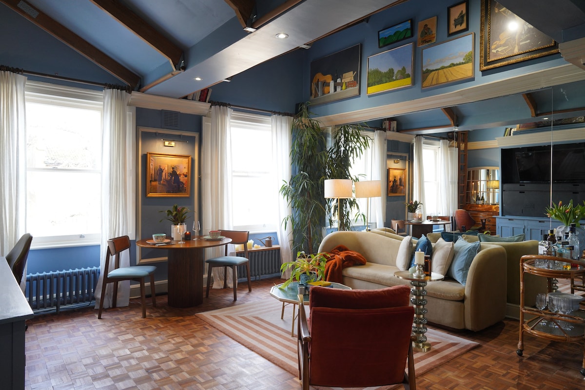 Home to trendy eateries, vintage shops, and pretty pastel-coloured houses, there's a reason Notting Hill is one of London's most beloved neighbourhoods. This cosy apartment is in the heart of the action, just a short walk from Kensington Palace, Hyde Park, and the lively Portobello Road. The interior is all about the sleek finishes, with botanical prints and greenery adding a bohemian touch. Plus you'll benefit from a private patio for a chilled coffee break.