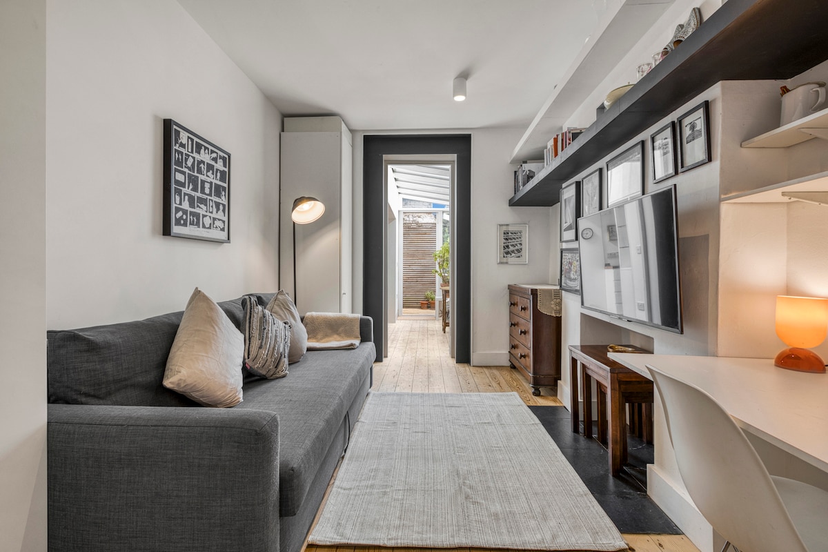 Stylish two bedroom maisonette on peaceful cul-de-sac, 5 mins walk to tube and the shops and restaurants of Upper street. Newly refurbished to a high standard with super king bed in master bedroom, off-street parking, high speed wifi, dedicated office & fully equipped kitchen with coffee machine and washer/dryer. Balcony to enjoy your morning coffee in the fresh air. This home from home is the perfect blend of tranquil location & city convenience full of original london character.