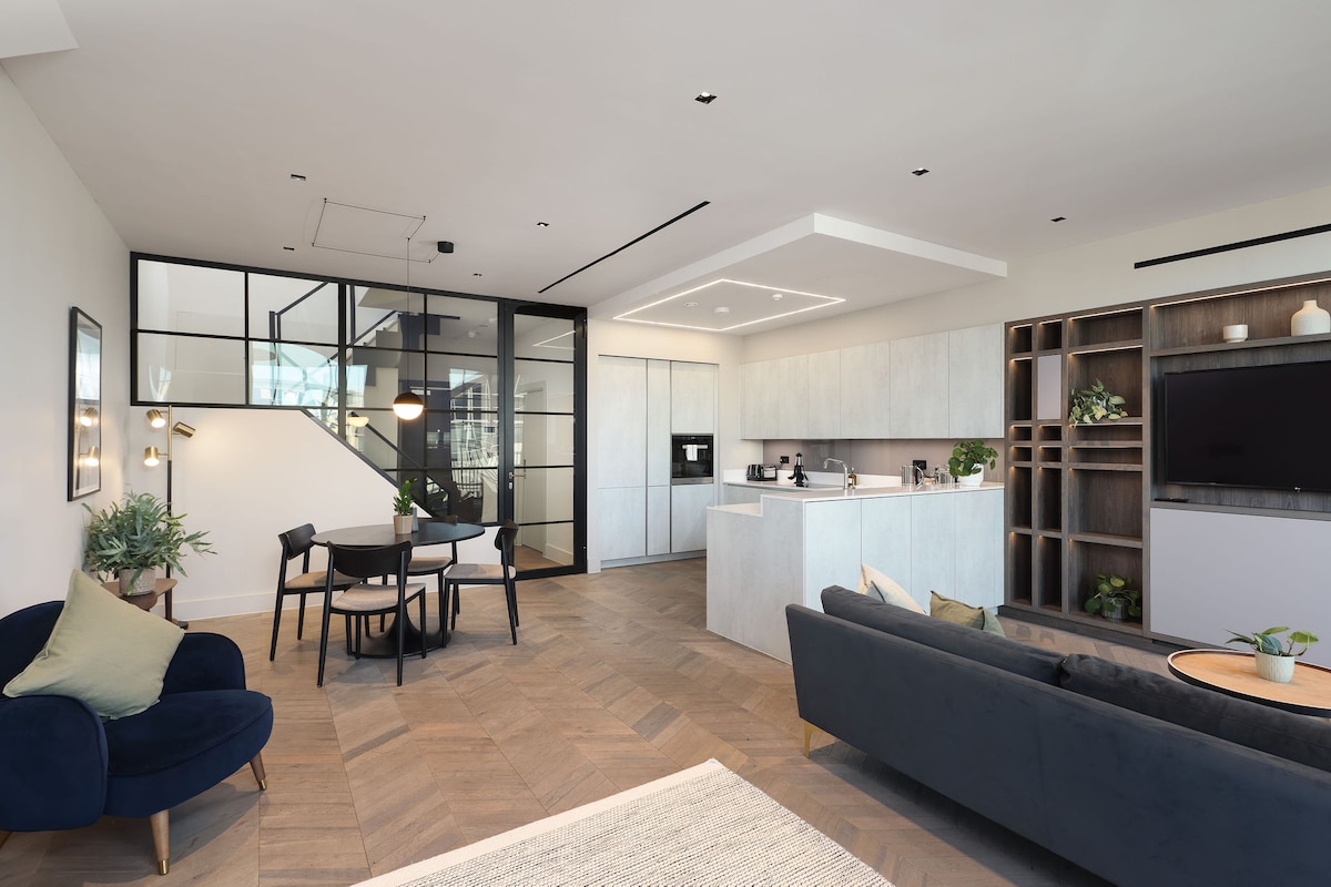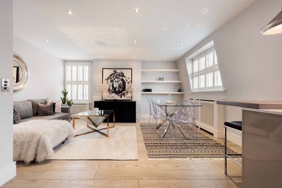 From ultra-sophisticated designs to discerningly chosen works from emerging contemporary artists, no detail has been spared in this sleek Notting Hill home. Hand-selected vintage and modern pieces are expertly arranged beneath double-height ceilings in the living space. Natural light pours through French doors that lead onto the 1st of 2 balconies, the perfect spot for a glass of your favourite tipple in the evenings. Notting Hill right on your doorstep, Kensington Palace under 15 mins by foot.