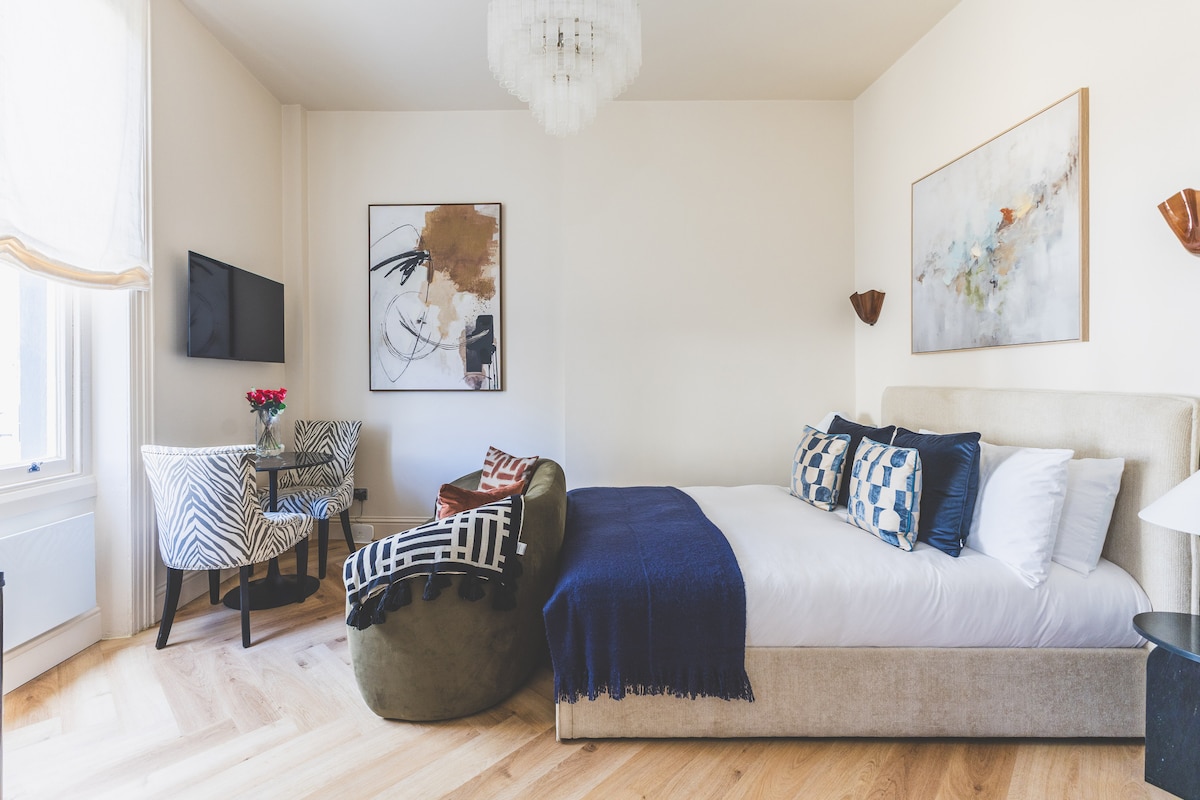 Enjoy historic charm and modern elegance in this newly renovated studio apartment, housed in a building with 250 years of history. Sound proofing ensures a calm stay, while your own full kitchen and private luxury bathroom allow you to unwind and relax. Our location is unbeatable. Tucked away on a quiet street by Leicester Square, you're minutes from top areas like The West End and Soho, with excellent transport links for further trips. Make us your base and spend more time enjoying London.