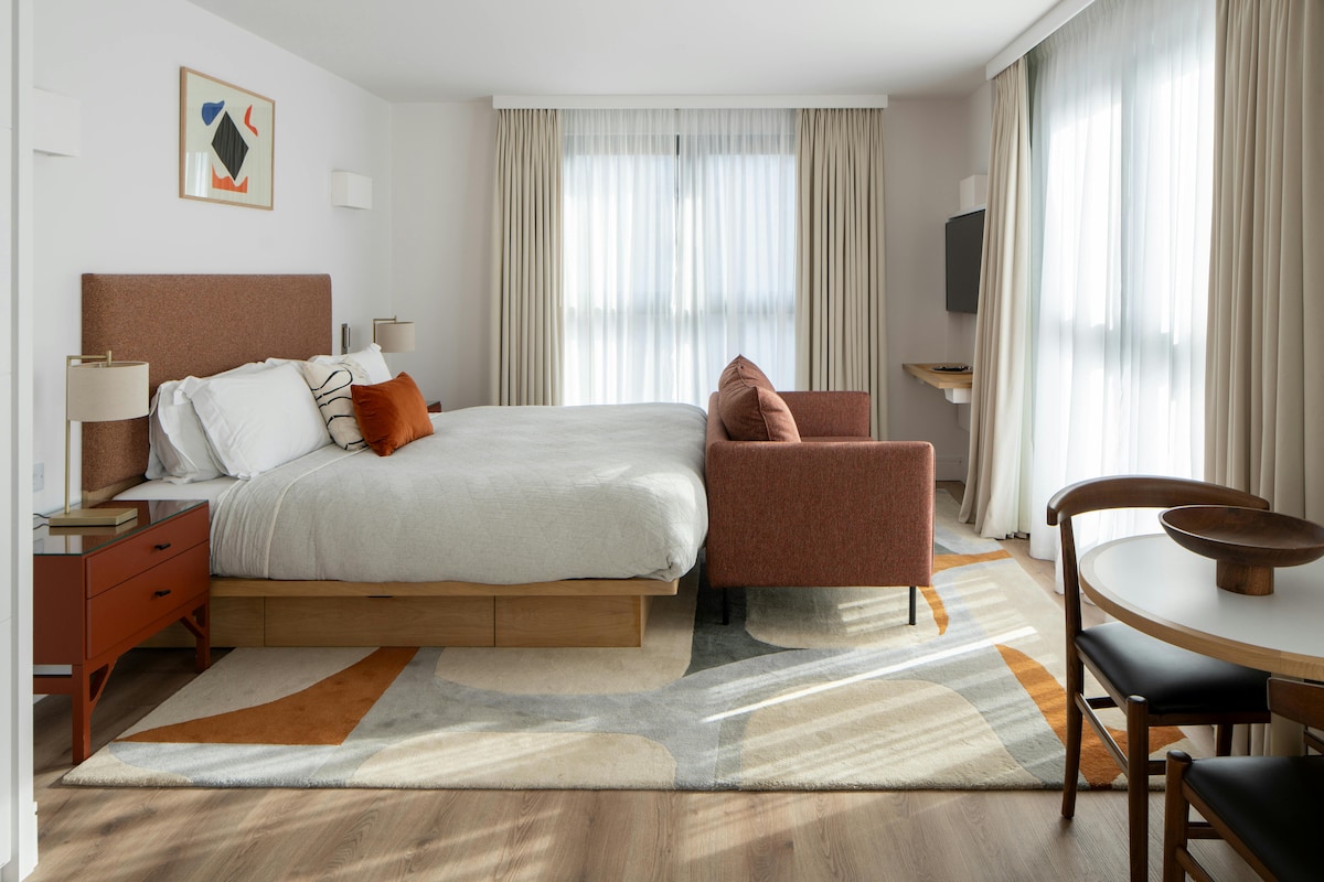 Our 32 sqm Studio Apartments offer Egyptian cotton sheets, Merino wool blankets, and luxury amenities from The White Company. Stay connected with free Wi-Fi, enjoy a movie on the HD TV, and cook in the fully equipped kitchen with Nespresso machine. Start your day with a breakfast package, and enjoy the convenience of a dishwasher, washing machine/dryer, and safe for a perfect stay.