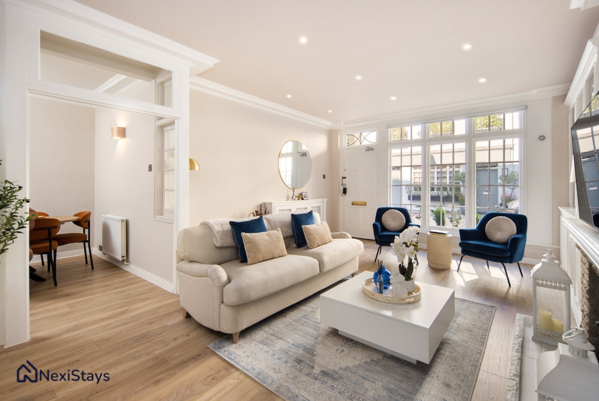 Elegant 1-bedroom Chelsea apartment with oak floors, calming interiors, full kitchen, and access to a quiet communal garden. Just 2 minutes from King’s Road and a short walk to Saatchi Gallery, museums, and Chelsea Physic Garden. Peaceful and stylish with secondary glazing to bedroom and lounge for a peaceful stay Superfast Wi-Fi, Smart TV and great transport links via South Kensington & Sloane Square stations Please remove shoes indoors A perfect London base for couples or solo travellers.