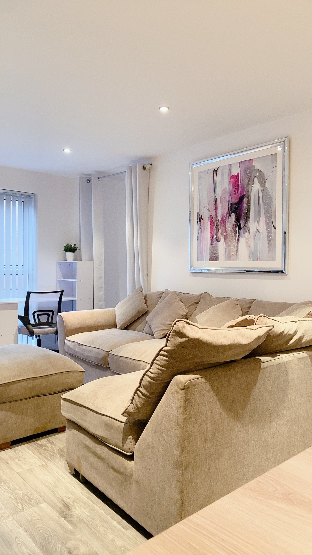 Luxury flat in centre of Poynton. Only 10 minutes from Manchester airport and a short walk to railway station offering good links to Manchester (20 mins) and London. Easy access to M56 and M60 motorways and beyond. Poynton is a bustling ‘village’ on the edge of Cheshire and close to The Peak District. Located centrally, the flat has numerous bars, restaurants and shops (including 3 supermarkets) right on its doorstep. Easy access to Middlewood Way, The Macclesfield Canal and Lyme Park.