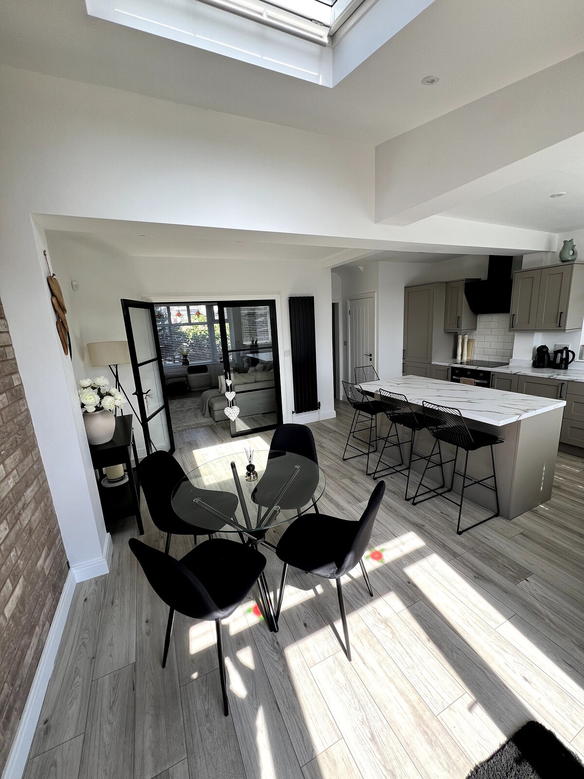 This is a beautiful house with in a fantastic location!Short walk from coffee & supermarket and Old Trafford Stadium.5 mins walk to Manchester United Football ground. Just 5 minutes drive to the City Centre.short walk White City Retail Park, Lidl super store, Tesco Extra. This house really does have it all. Space, style and location! No matter what brings you to this great city. The whole group will enjoy easy access to everything from this centrally located place.