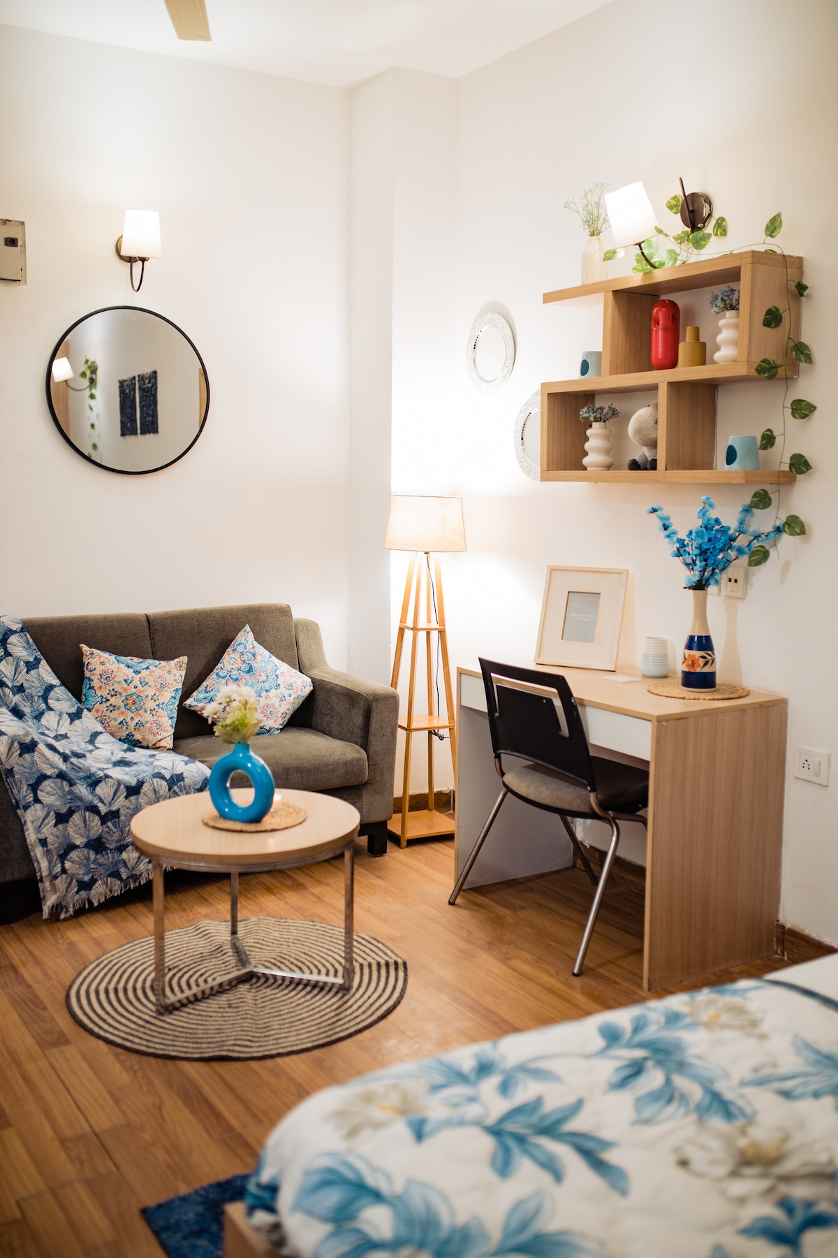 Welcome to Project Artisan's Retreat --a thoughtfully designed and stylish studio apartment nestled high above the lively buzz of Noida, perched atop at a bustling shopping mall. Whether you’re a solo traveler, a working professional, a digital nomad, or a couple seeking a cozy escape, this elevated urban experience offers the perfect balance of creativity, comfort and convenience. Project Artisan Retreat offers more than just a stay — it’s an experience. From sunset views to midnight strolls.
