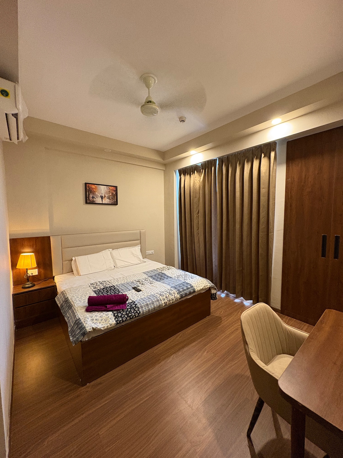 The first 2 Bhk Apartment that meets every requirements ✨ - 2 Bedrooms ( Master bedroom, second bedroom) - 2 King Sized Beds - A spacious living area with a comfortable seating arrangement - 2 bathrooms ( 1 in each of the bedrooms) - Kitchenette (with all cooking basics available and amenities stocked up, it is the perfect place to prepare your favourite meals) - A Shared Balcony area connecting with the apartment which can be the perfect space for your evening strolls Book Now!!