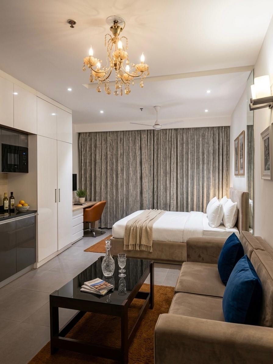 Luxurious & Independent Fully Equipped 1bhk Studio Apartment, with all Modern Amenities, Couple Friendly, Centrally Located, Fantastic night view from 20th Floor. Enjoy your Precious Stay without any hustle. Shelf Check in and Doorstep Food Delivery from Zomato and Swiggy. This Apartment is Located Inside the Shopping Mall Area, Within Premises- US Cinema at 5th Floor, Gold Gym at 4th floor, All big Food outlet at ground Floor, Gaming Zone for kids, More Supermarket for grocery and Many more.