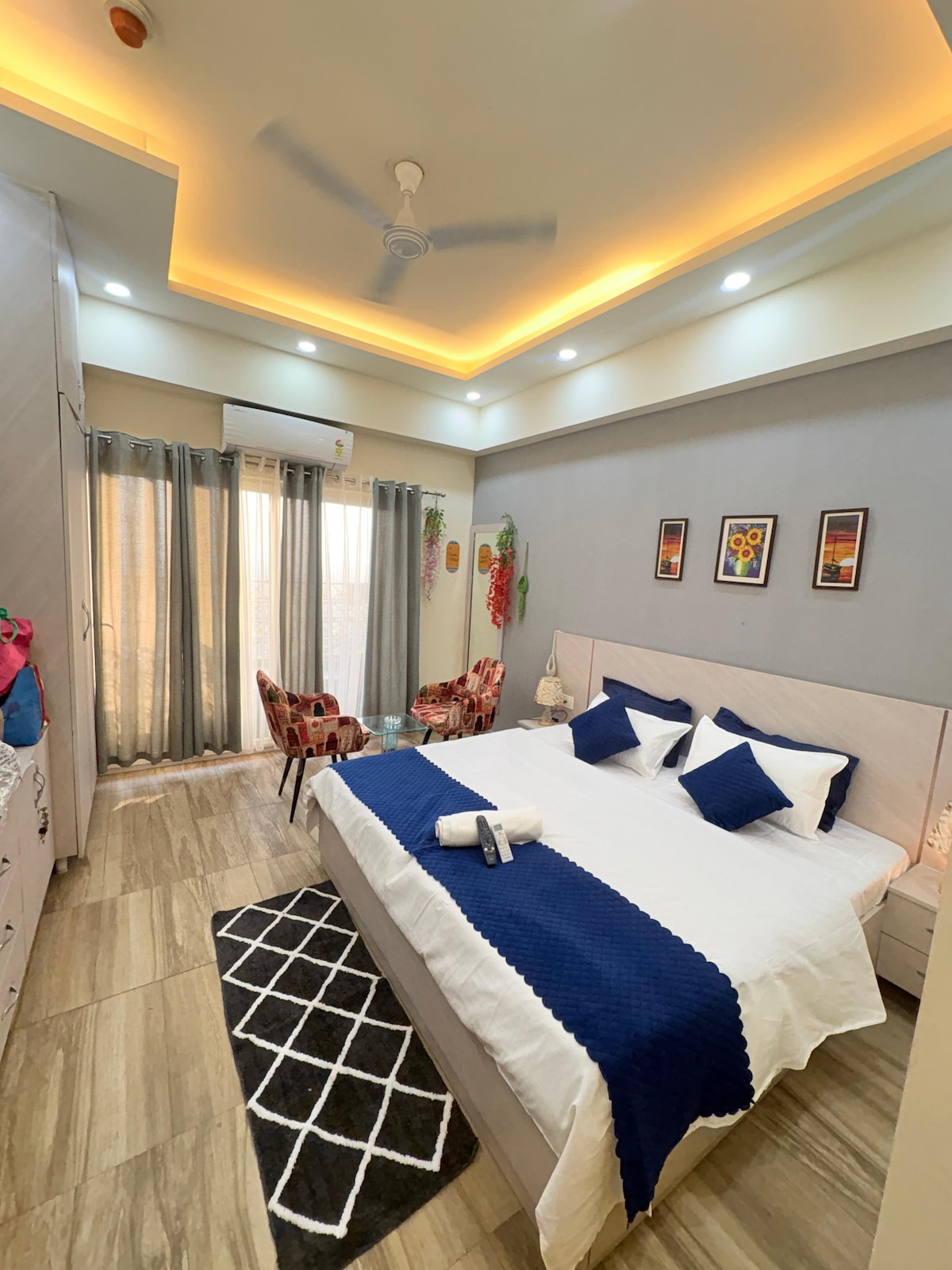 Hourly bookings are also available (6,12 and 24hrs) Relax in this peaceful, modern apartment at Paramount Golfforeste with beautiful golf views and premium amenities. Perfect for business travelers, expo visitors, and students — just minutes from India Expo Centre & Mart and Knowledge Park Greater Noida. Enjoy a calm stay with easy access to markets, metro, and main roads.
