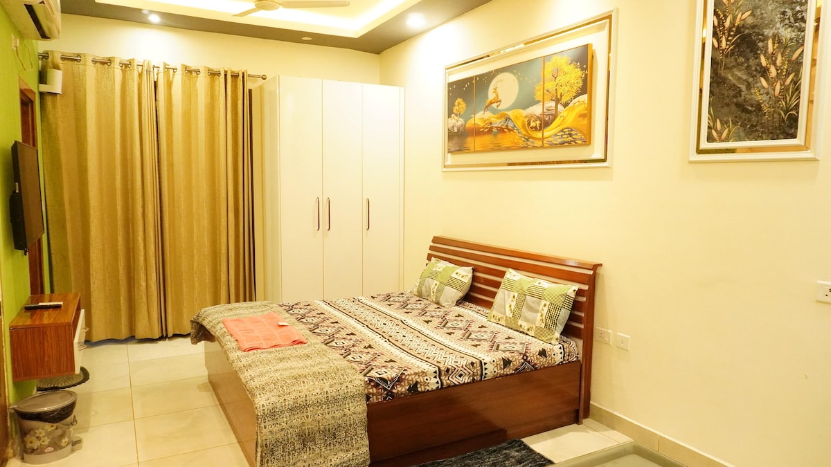 Welcome to Secretariat Studio—a peaceful space in Greater Noida’s Chi V, with a clear view of the Yamuna Expressway. Just 25 mins from Jewar Airport and 2 hrs from the Taj Mahal, it's a perfect blend of calm and connectivity. Ideal for couples, solo travelers, digital nomads, or weekend explorers, the studio offers elegant design, a cozy bed, full kitchen, balcony, and 24/7 delivery access.
