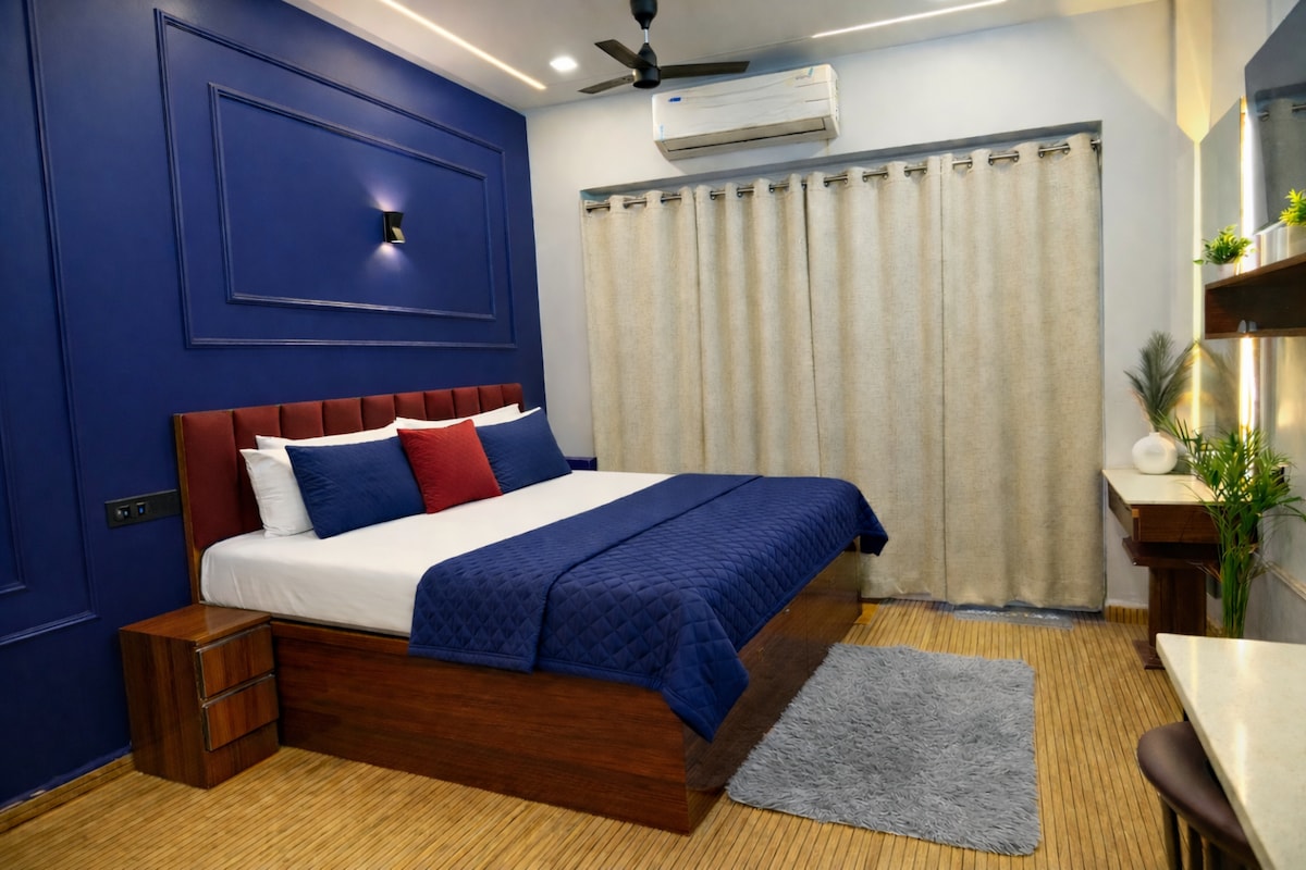 Luxury studio apartment designed for comfort, privacy, and relaxation. Featuring a private in-room jacuzzi, elegant interiors, warm lighting, and a cozy king-size bed, this space is perfect for couples, celebrations, or a peaceful city getaway. Ideal for romantic stays, birthdays, and anniversaries, the studio offers a clean, modern ambiance with essential amenities for a smooth and memorable stay. Relax, unwind, and enjoy a premium experience.