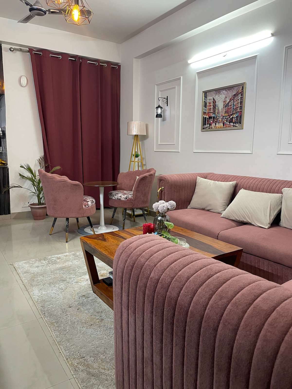A beautifully furnished independent single bedroom apartment. Facilities include a living room with a sofa, a fully functioning kitchenette with a fridge, jio broadband wifi & an amazing terrace garden. This is a home, not a commercial guest house. Space is sanitised to CDC standards. The location is a safe & friendly residential neighbourhood with parks, a running track & an outdoor gym. Within 2 km, you can access the city centre, metro, malls, restaurants and grocery stores.
