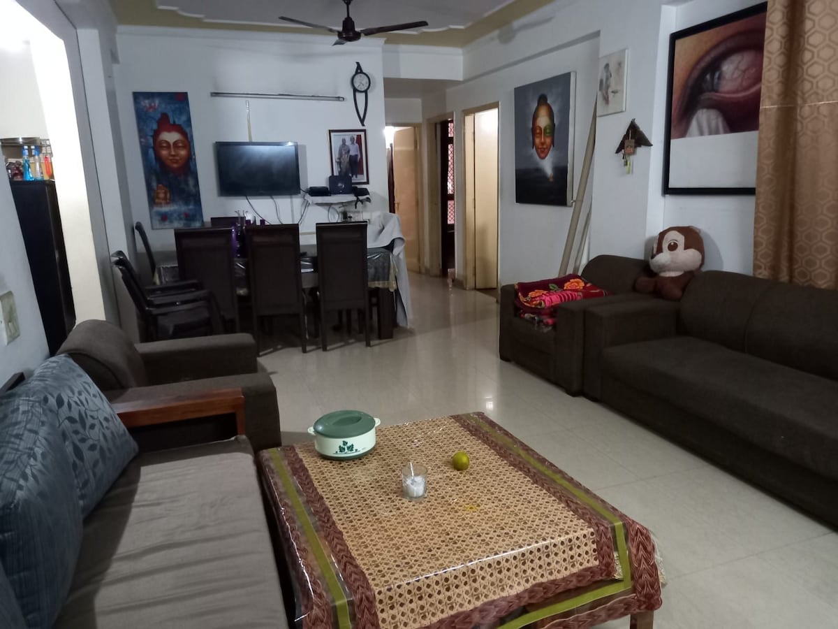 Allow us to host you at our spacious 3 room guest house with a large dining space and a cozy green space to spend perfect evening with loved ones. It also has a 24*7 chef come caretaker (minimal food charges applied) The property can be booked for events such as Weddings, Birthday Parties, Kitty Parties, etc. It is at a mere distance of 10 minutes from Anand Vihar Railway Station, 30 minutes from New Delhi Railway Station, 30 minutes from IGI Airport and 10 minutes from Vaishali Metro Station