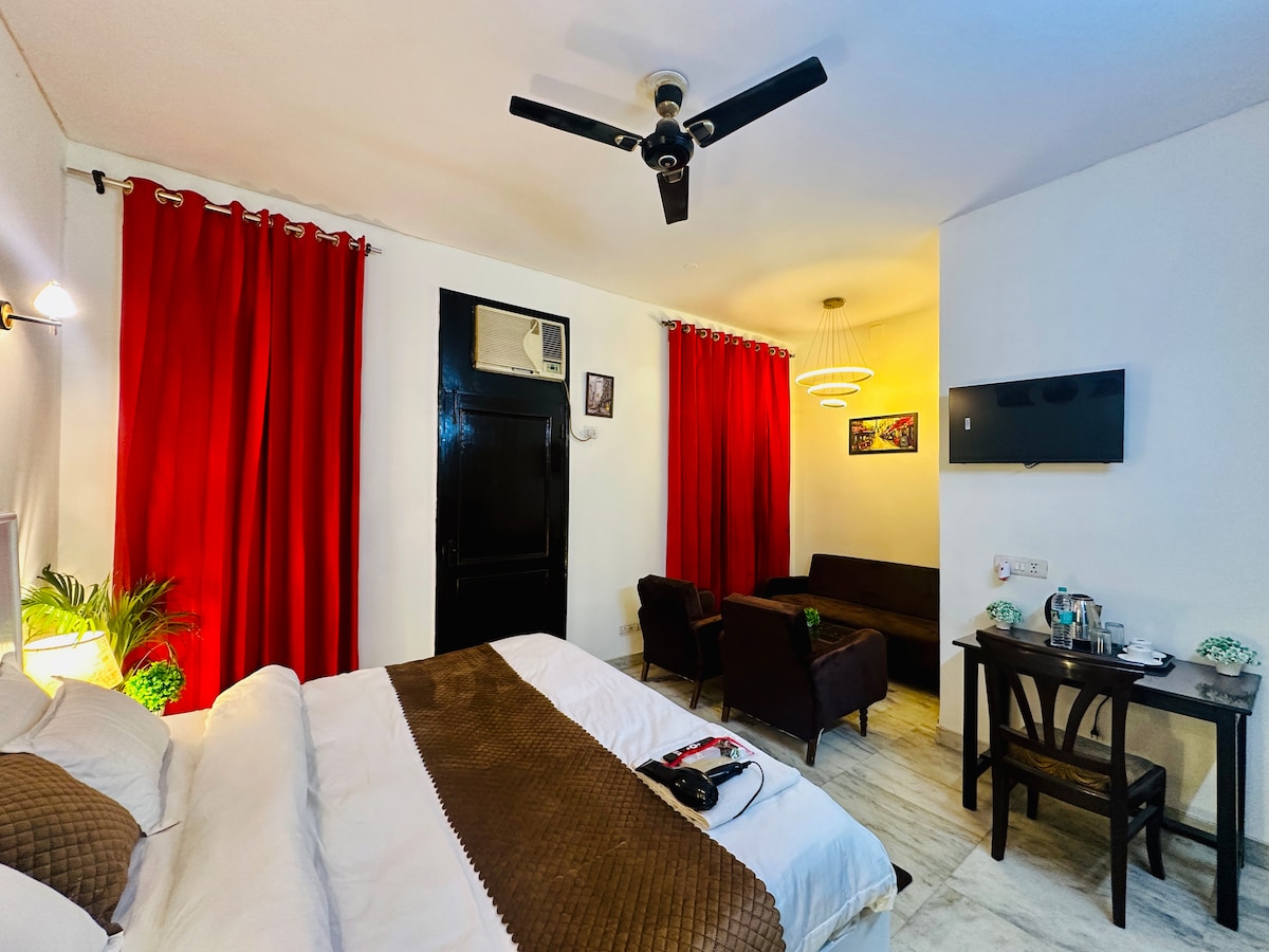 Spacious and comfortable private room with a dedicated workstation, perfect for business travelers and remote work. Enjoy high-speed WiFi, AC, Smart TV, attached bathroom, wardrobe, and all essential amenities inside the room. No kitchen access. Located just 5 minutes from Sector 62 Metro Station, offering easy connectivity to offices, markets, and major hubs. Ideal for short and long stays.