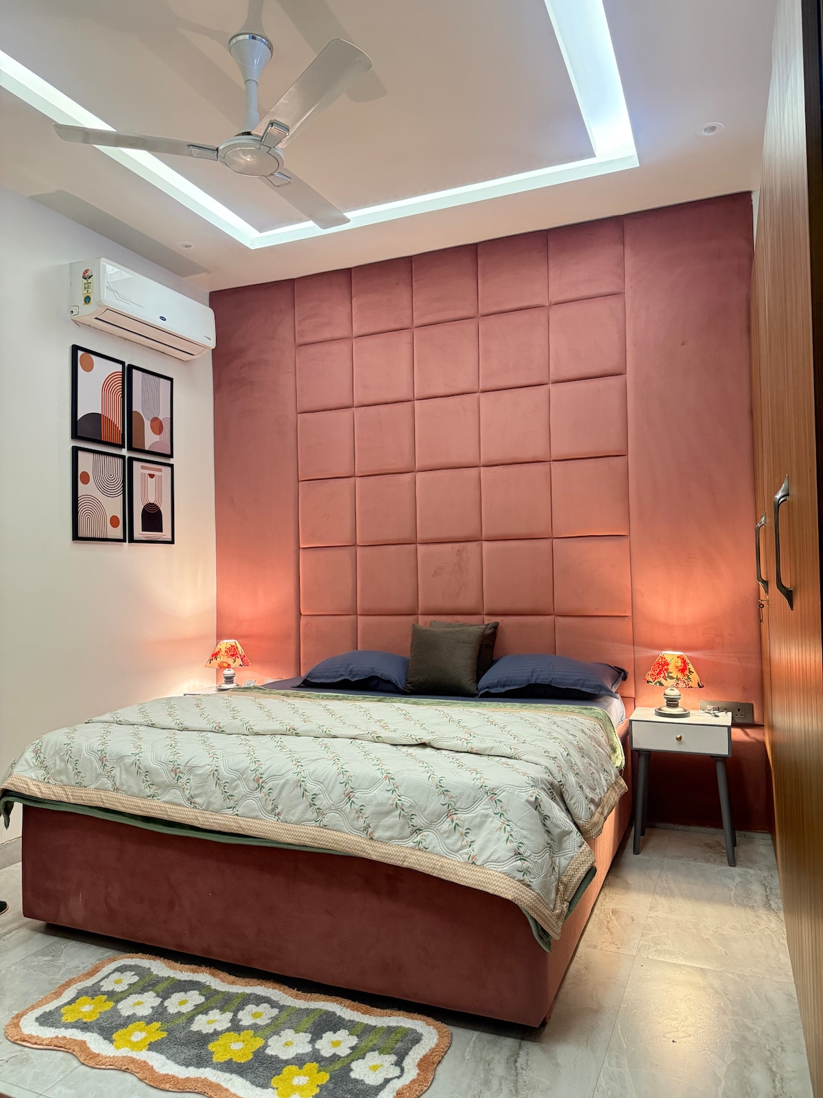 Cozy budget stay with all amenities- bathroom and kitchenette (microwave, cook-top, refrigerator, RO, utensils etc). Unique jazzy musical design, instruments and TV(netflix,prime,hotstar,zee,sony) available for recreation. Central location near sector 18, DLF mall of India, metro train at walking distance, wonderful location for foodies as amazing BP's street food and the famous Tea Shop and resturants within 500 meters. Night walks with ice cream stalls at 15 meters. Free parking right outside.