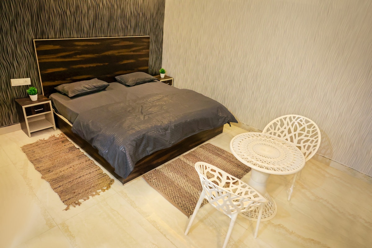 Unwind in our NCR retreat! Two spacious rooms, a fully equipped kitchen, and a sprawling 40m garden await you. Just 5 min walk to the metro, with 5 malls in 10 mins. Enjoy free parking and 24/7 security in our gated villa society. Immerse yourself in the harmonious blend of urban amenities and the soothing embrace of nature. Whether exploring the bustling city or rejuvenating in our verdant oasis, your stay promises a perfect balance of comfort and tranquility. Welcome to your peaceful escape!