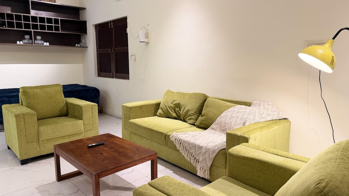 The first 2 Bhk Apartment that meets every requirements ✨ - 2 Bedrooms ( Master bedroom, second bedroom) - 2 King Sized Beds - A spacious living area with a comfortable seating arrangement - 2 bathrooms ( 1 in each of the bedrooms) - Kitchenette (with all cooking basics available and amenities stocked up, it is the perfect place to prepare your favourite meals) - A Shared Balcony area connecting with the apartment which can be the perfect space for your evening strolls Book Now!!