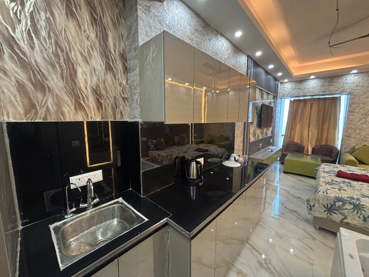 Raahat by Mulberry Homestays is an elite, fully furnished apartment located in Sunworld Grand Arista, Noida. Designed for those with a taste for luxury, it features a private two-seater jacuzzi, sensor lighting, Mitsubishi ACs, smart TVs, and interiors that redefine elegance. Whether it’s a romantic escape or a premium staycation, Raahat offers the finest blend of comfort and opulence—making it one of the most stunning stays Noida has to offer.