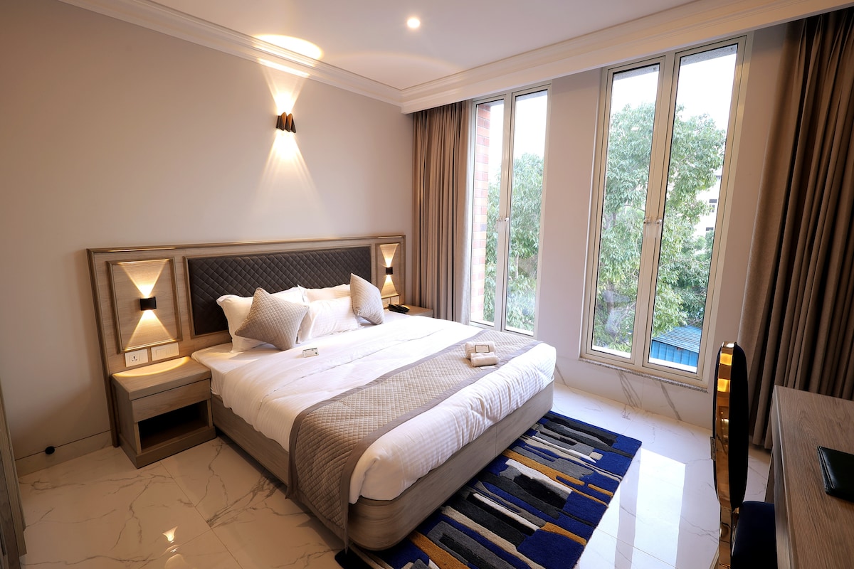reat yourself to a glamorous stay just steps away from India Expo Mart. This stylish escape blends comfort with convenience, perfect for exhibitors, attendees, or anyone looking to unwind in elegance.