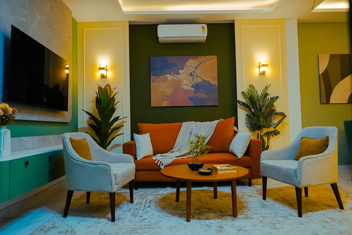 The first 2 Bhk Apartment that meets every requirements ✨ - 2 Bedrooms ( Master bedroom, second bedroom) - 2 King Sized Beds - A spacious living area with a comfortable seating arrangement - 2 bathrooms ( 1 in each of the bedrooms) - Kitchenette (with all cooking basics available and amenities stocked up, it is the perfect place to prepare your favourite meals) - A Shared Balcony area connecting with the apartment which can be the perfect space for your evening strolls Book Now!!