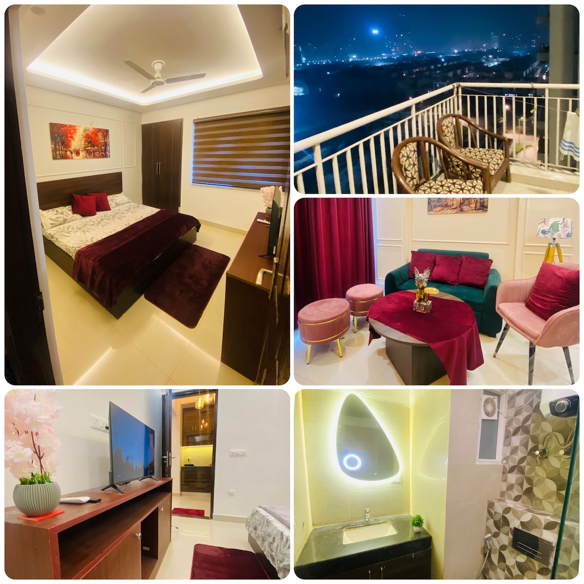 Fully furnished luxurious studio apartment with all modern amenities available in Greater Noida near Metro station. Luxurious , Specious and Couple friendly studio in Greater Noida Near Expo Mart. What You’ll Love: ✔ Unique Interior – Enjoy the Mesmerizing Interior. ✔ Modern Comfort – A beautifully furnished space with a comfy bed, cozy seating, and stylish decor. ✔ Fully Equipped Kitchen – Cook your favorite meals with ease. ✔ Fast WiFi & Smart TV – Stay connected and entertained.