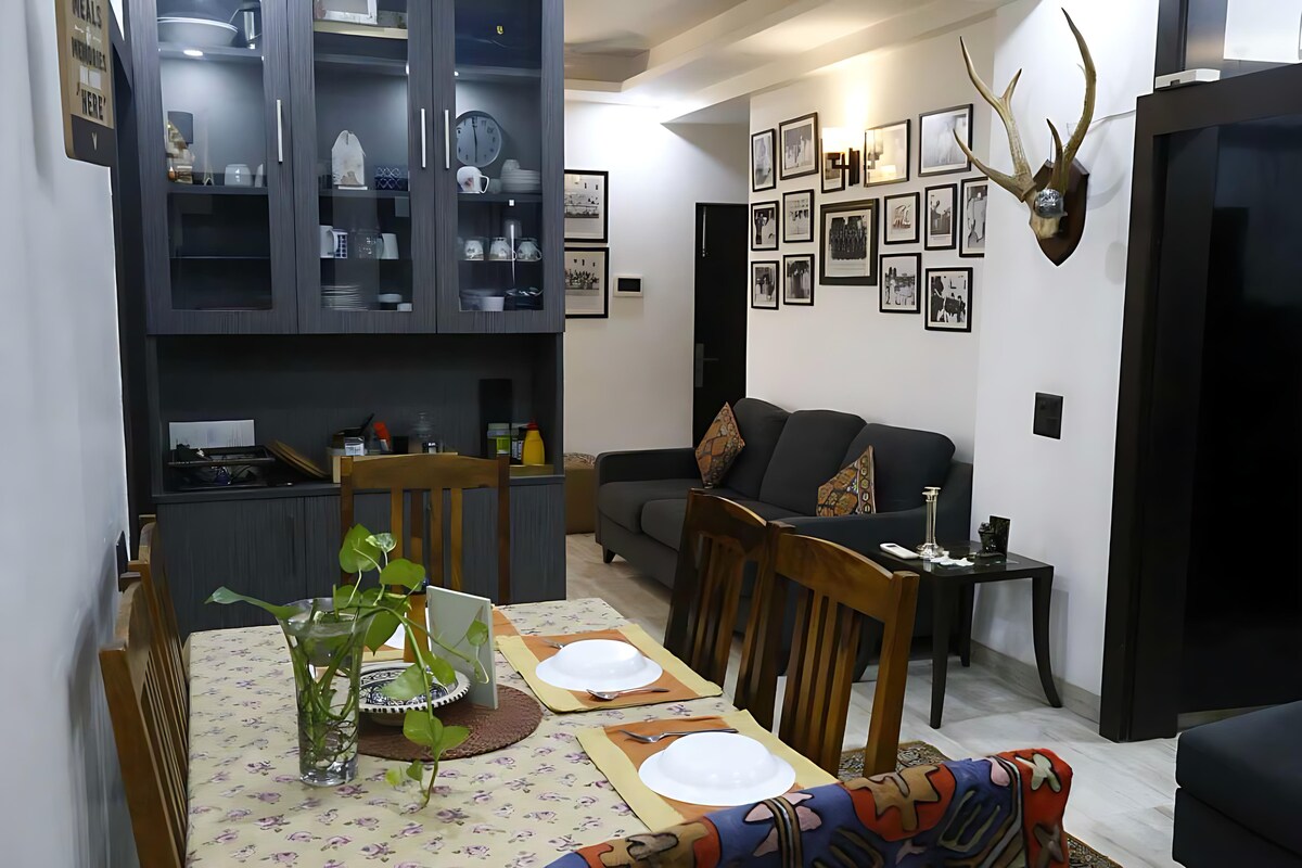 The first 2 Bhk Apartment that meets every requirements ✨ - 2 Bedrooms ( Master bedroom, second bedroom) - 2 King Sized Beds - A spacious living area with a comfortable seating arrangement - 2 bathrooms ( 1 in each of the bedrooms) - Kitchenette (with all cooking basics available and amenities stocked up, it is the perfect place to prepare your favourite meals) - A Shared Balcony area connecting with the apartment which can be the perfect space for your evening strolls Book Now!!