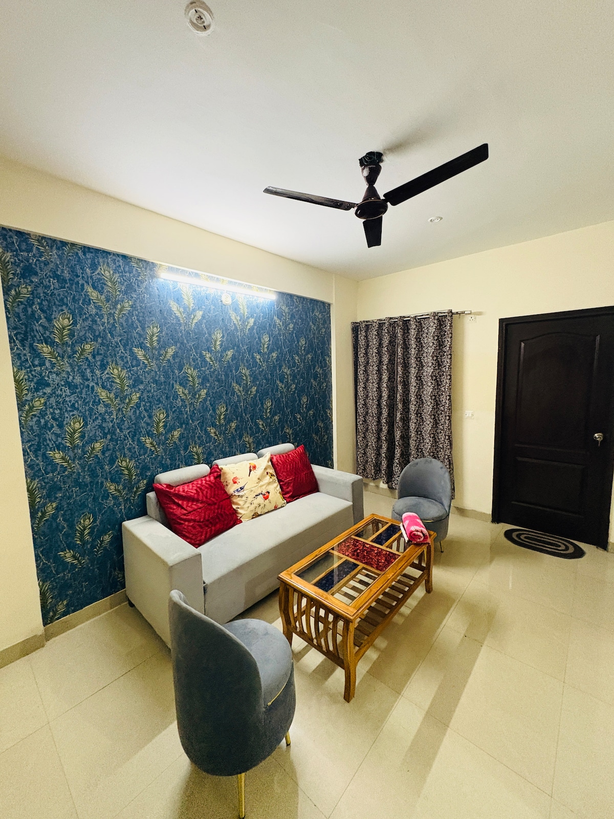 Kick back & relax in this calm & luxurious studio with the warmth of home & the vibe of a high-end hotel. Furnished with a plush King-size bed & modern décor. Amenities: 24/7 Grocery Store Modern Kitchenette High-Speed WiFi & TV Secure Parking outside tower but 24/7 Secured The first 2 floors has commercial shops, offering: Laundry Services Salon Café Medical Store Easy access to the India Expo Mart, Buddh International Circuit. Perfect for couples, solo travellers, or business partners.