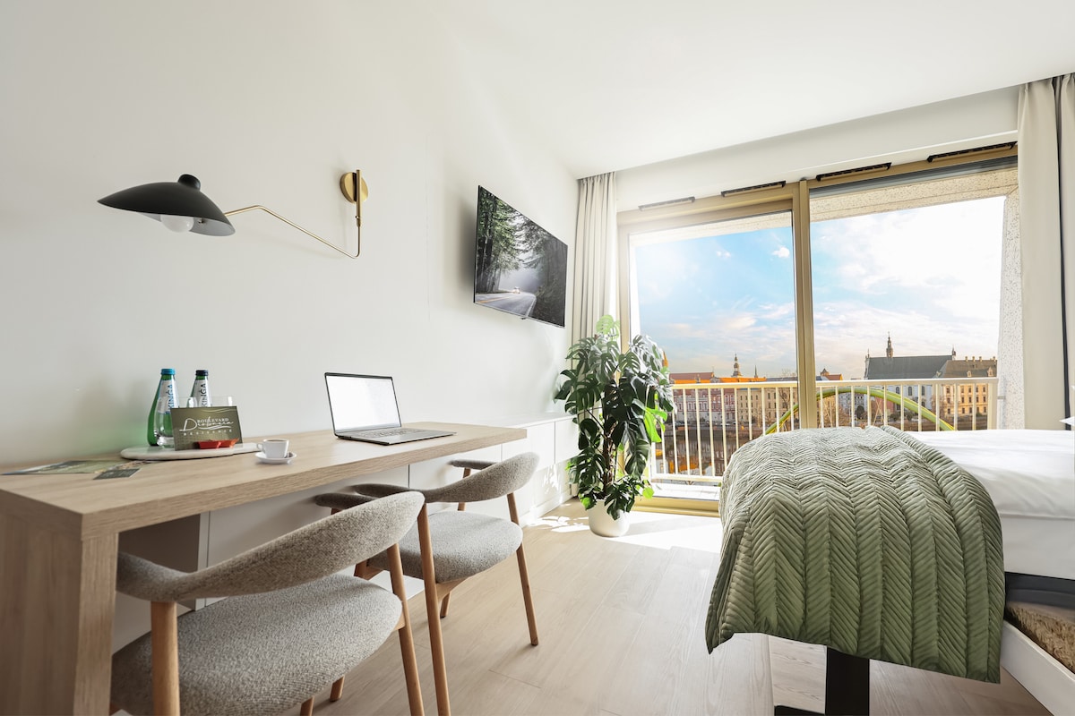 Nowoczesne, łączące minimalizm i estetykę, miejsce do wypoczynku w kameralnym obiekcie. Doskonały na prywatny wyjazd lub służbowy pobyt - sprawdzi się jako miejsce pracy. Pokój wyposażony w klimatyzację, prywatną łazienkę i dwa pojedyncze połączone ze sobą łóżka tworzące łoże typu King. Standardowo pokój przygotowany jest w tej formie. Jeśli życzysz sobie aby na Twój pobyt pokój posiadał dwa pojedyncze łóżka z przyjemnością spełnimy Twoją prośbę. Minimalizm, komfort i wygoda to nasz priorytet.
