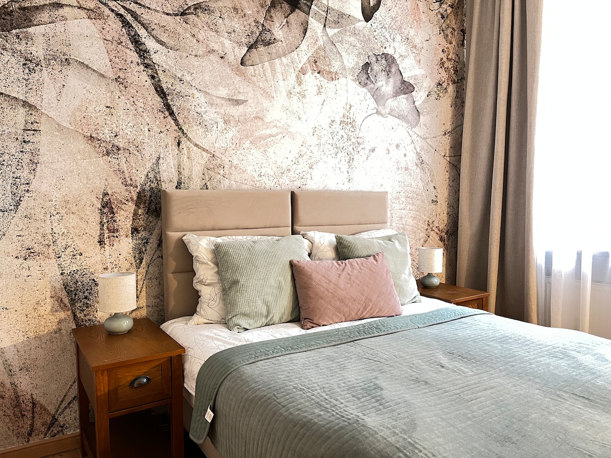 Wyjątkowy apartament w ponad 100-letniej kamienicy na bydgoskim Okolu. Klimat boho, naturalne kolory beżu i szałwii, roślinna fototapeta i akcenty odkrytej cegły tworzą ciepłą, stylową przestrzeń. Osobna sypialnia z łóżkiem hotelowym (2×1 lub 1×2), salon z wygodną sofą, kuchnia i łazienka zapewniają pełen komfort. Parter, cisza i świetna lokalizacja – blisko centrum, Wyspy Młyńskiej, Opery, starówki, Kanału Bydgoskiego i PKP. Idealne miejsce na city break, pobyt służbowy lub romantyczny weekend.