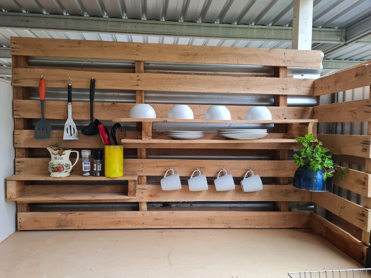 Off-grid adventure – farm life & outdoor kitchen”: Experience a real off-grid adventure on a working fruit farm. Simple, peaceful, and surrounded by nature. No luxury here – it’s all about living easy and close to the land. Expect some dust, animals, and fresh air everywhere. The outdoor kitchen is basic but fully functional. Perfect for those who love simplicity, authenticity, and a true back-to-basics stay.