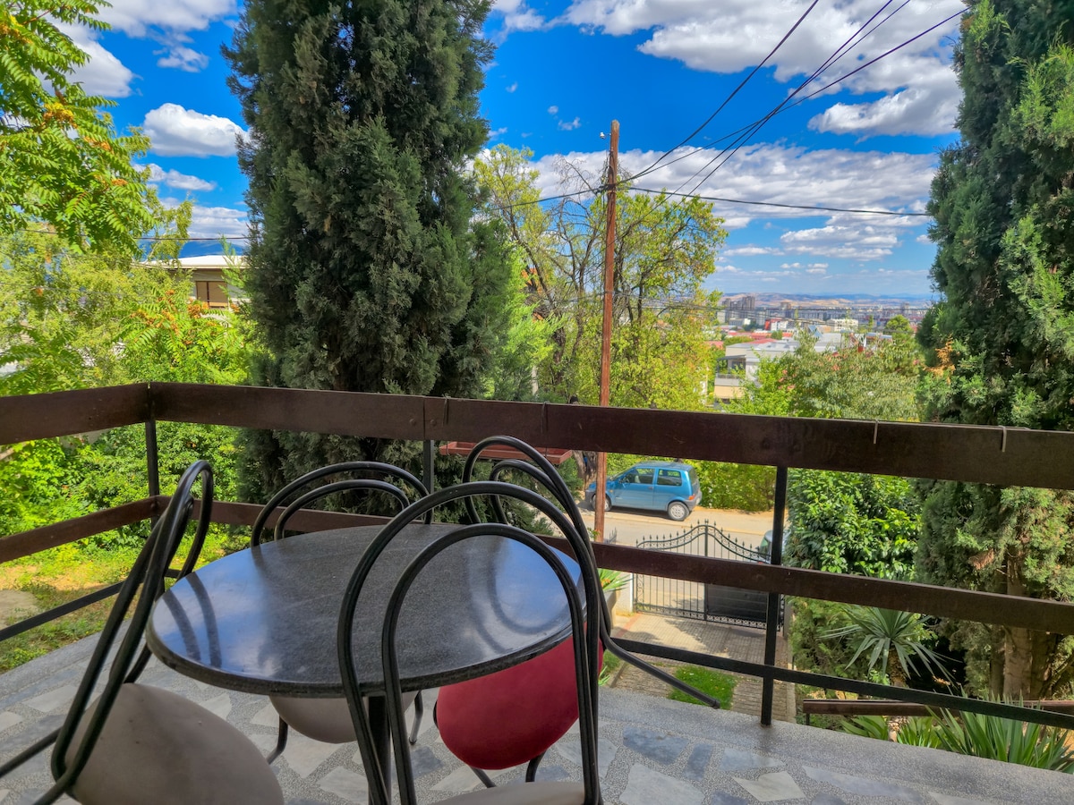 Welcome to your peaceful retreat in Skopje! Our charming multi-level villa offers everything you need for a relaxing and memorable stay – whether you're traveling with family, your partner, friends, or working remotely. Located in a quiet and green neighborhood, just a short drive from the city center, this space is ideal for anyone looking to enjoy both comfort and convenience. You’ll have a private apartment with its own entrance, featuring: