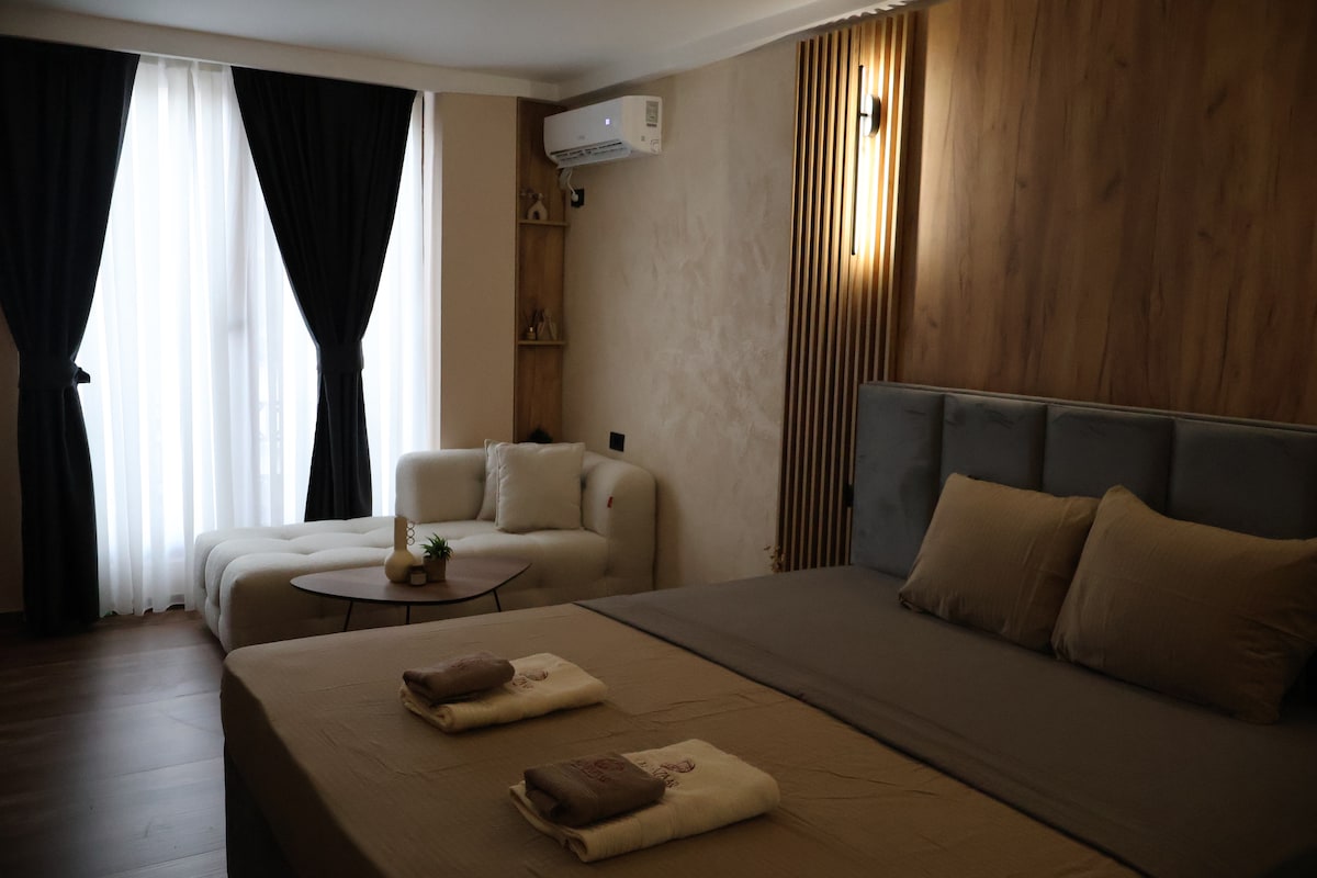 Welcome to Hotel & Coffee Old Bazaar! This stylish deluxe double room is located in the heart of Skopje’s Old Bazaar, perfect for 2 guests. It offers a comfortable bed, private bathroom, air conditioning, fast WiFi, and a modern cozy design. Step outside and enjoy restaurants, cafes, and cultural attractions just a few steps away. ☕ On-site coffee shop 📍 Central Old Bazaar location Perfect for couples and travelers.