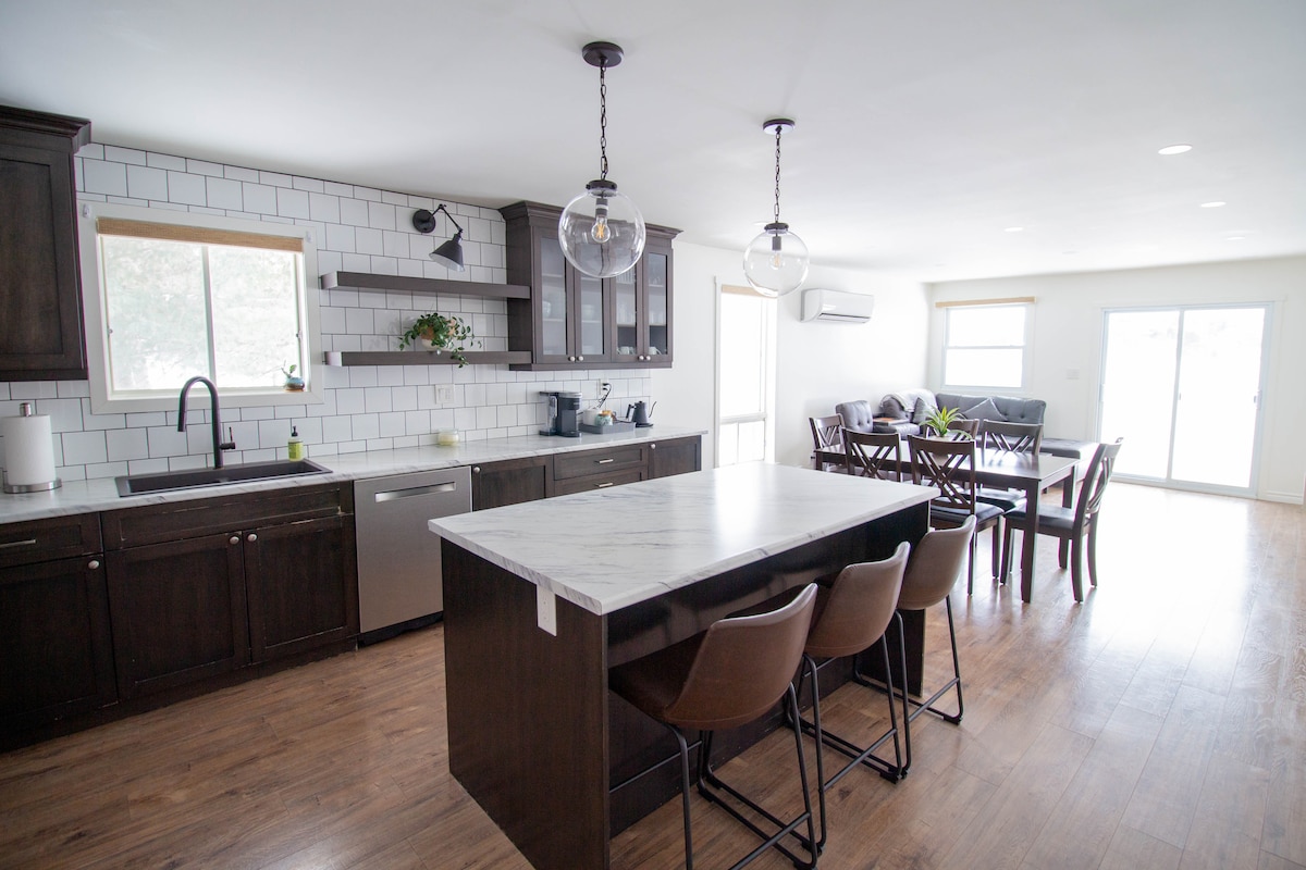 Escape to this cozy waterfront cabin on Long Lake 🌊✨ with a private dock, breathtaking views, and year-round comfort. Just steps from Kivi Park for hiking, biking, and skiing 🥾🚴♀️⛷️, and minutes from Sudbury’s 4 Corners. Recently renovated with a modern kitchen 🍳, vaulted ceilings, and stylish touches, the cabin offers a comfy double bed 🛏️ or a new pull-out queen under the stars ✨ — perfect for couples, small families, or solo travelers.
