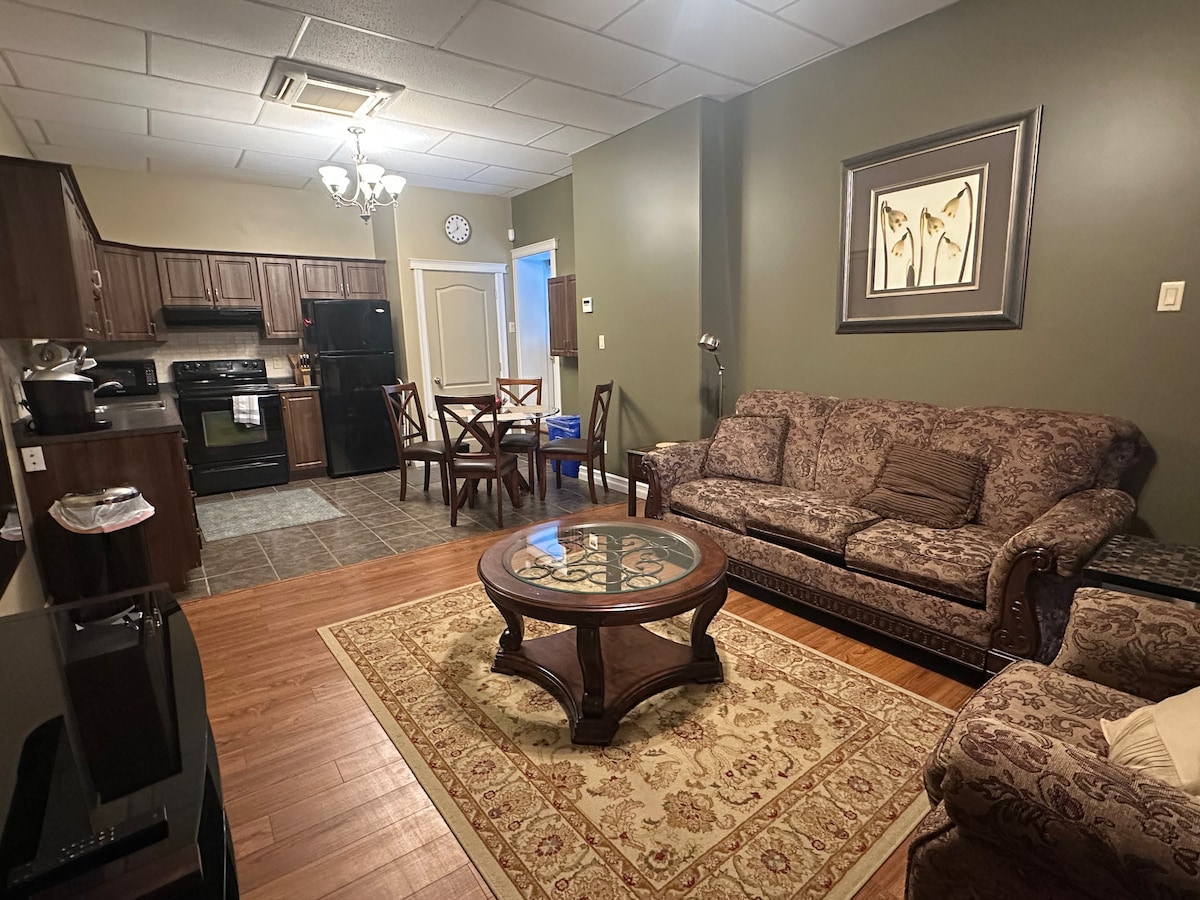 Modern 2-Bedroom Apartment in the heart of Chelmsford! Located above a cozy café with fresh soups, baked goods, specialty drinks, and a vendor market. Walking distance to groceries, LCBO, gym & banks. Only 20–25 min to downtown Sudbury’s restaurants, theatres, Science North & arena events. Spacious, fully equipped kitchen plus dedicated office space—perfect for work or leisure, with comfort and convenience.