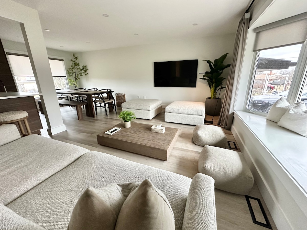 Escape to the serene beauty of Niagara’s Wine Country at our newly-renovated modern bungalow—located just 15-minutes from The Falls! Indulge in ultimate comfort with cloud-like beds, Restoration Hardware furnishings, FOUR smart TVs, and the convenience of an EV charging station. Retreat to the lower-level media room, complete with an Italian Soda station and games table, or unwind in the backyard which boasts a fire pit, badminton net, hammock & BBQ for memorable al fresco dining.