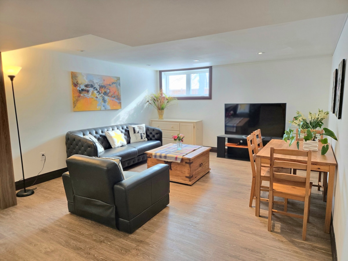 The basement unit has two bedrooms and an extra double sofa bed just in case. The unit includes a kitchen, a private full bathroom and necessities. This suite is located in a quiet neighbourhood, close to the TTC bus routes, TTC subway, GO bus station, Yorkdale mall and local shops. There is a separate private entrance from behind the building so you'll have privacy and flexible check-in process with a smart-lock.