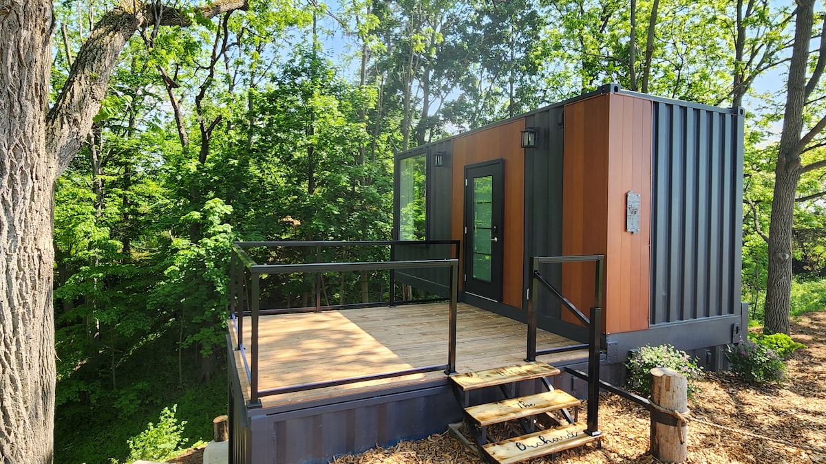 Enjoy the sounds of nature when you stay in this unique place. Our newly renovated "Valley View, Container Home" in beautiful Niagara at Inn The Orchard, has been designed with all luxuries of home but created guaranteeing a relaxing atmosphere and simplicity that you'll never forget. We love creating spaces allowing you to escape the city and be surrounded by nature while remaining in the heart of Niagara's Wine Country! Enjoy this unique spot surrounded by fruit orchards on the valley edge.