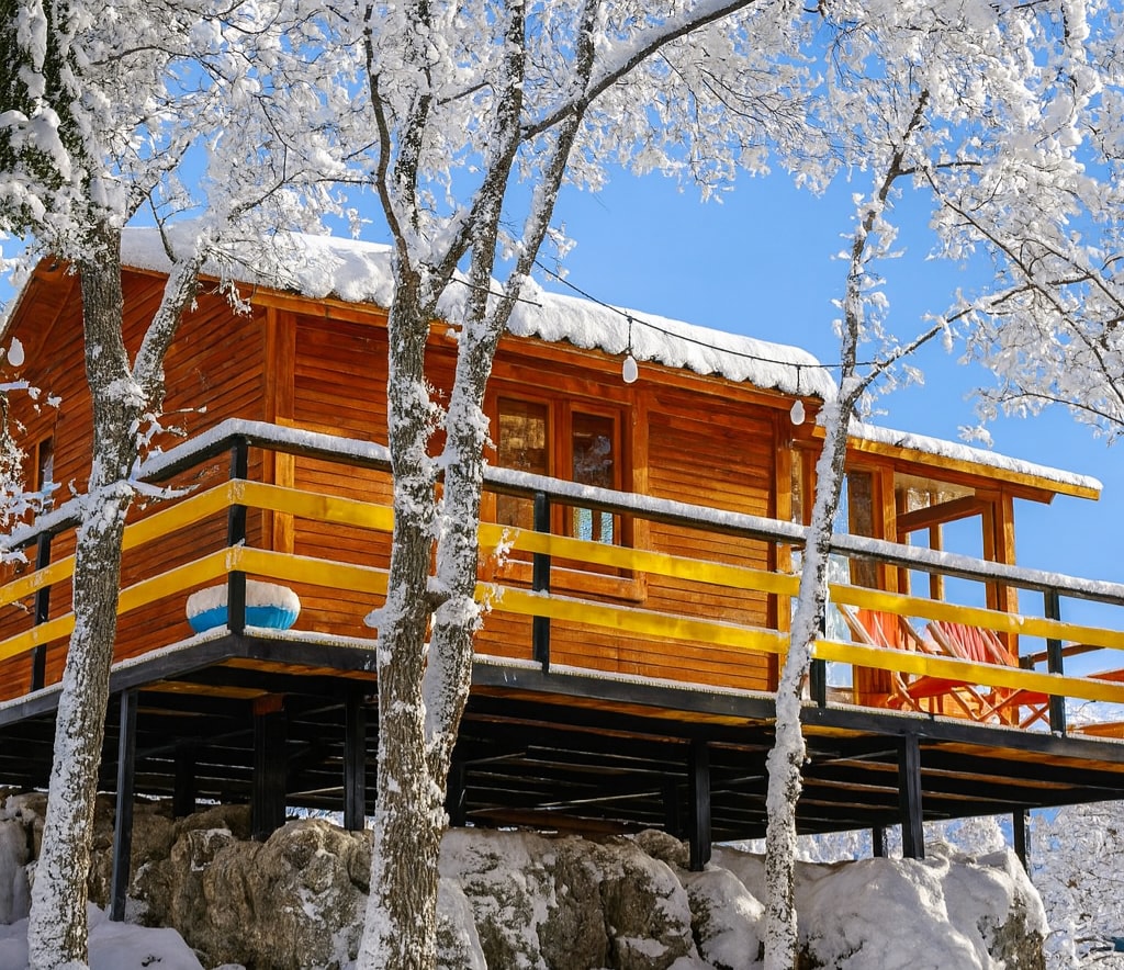 Cozy, handcrafted treehouse for two with panoramic views, a private outdoor heated hot tub, and smart projector with Netflix. Features a queen bed, full bathroom, kitchenette, BBQ, firepit, hammock, board games, and mountain air. One of three units of Sevenoaks treehouses on the same land — perfect for couples or friends booking together. Optional breakfast, wine/cheese platters, and delivery available. A peaceful forest stay, just 40 min from Beirut.
