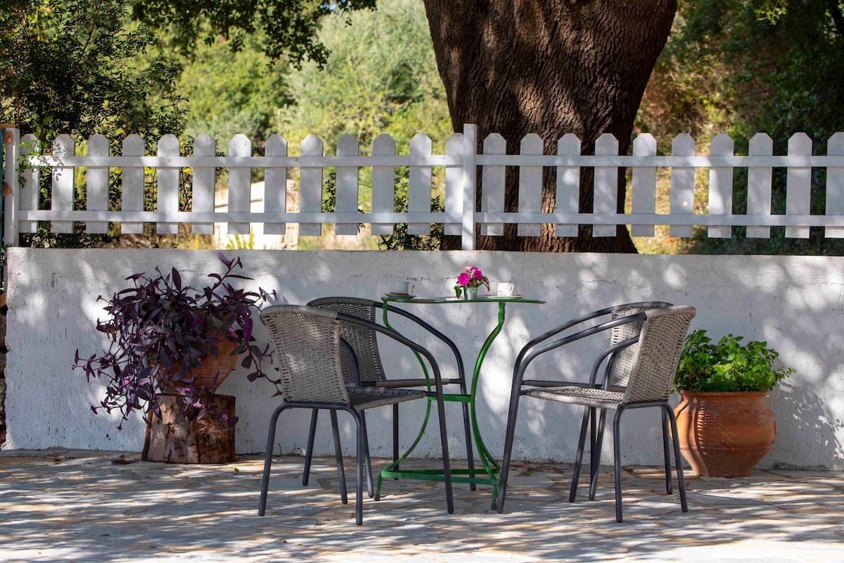 Our renovated apartment is a second-generation family-owned passion project that opened in 2022! Part of a 1-acre property, it has a large garden, on-site parking and solar-powered hot water. Its central location (7km to Corfu town) makes it the perfect base for people looking to explore the island - no windy roads here. Steps away from a bus stop, you are a ride away from many beaches & historical sites. The closest beach, supermarket, bakery, restaurants & doctor are all within a 5 min. walk.
