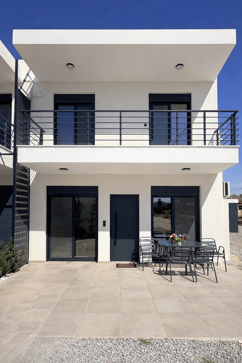 Comfort Studios, size 43 sq.m., are characterized by the concept of comfortable accommodation. They have a double bed, which is isolated by sliding partitions offering privacy, in case you wish so. They are elegantly furnished with a fully equipped kitchen, table and a sitting area with a comfortable sofa which turns into two single beds, a spacious bathroom and a small balcony. The comfort studios are located at the ground floor, 1st floor or 2nd floor.