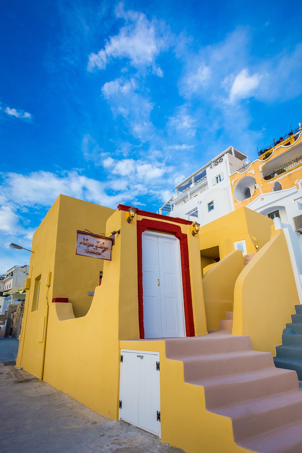 Alyvia Suites is a complex of 4 brand new Suites, uniquely situated in a quiet location in the area Finikia, a 10 minute stroll from the center of Oia. The Suites have been restored with great care, following the traditional architecture, and are decorated with luxurious furnishings. Modern installations include, a minibar, a safe, satellite TV and free wi-fi.All Suites have private veranda with a Hot Tub and Amazing View to the Sea.