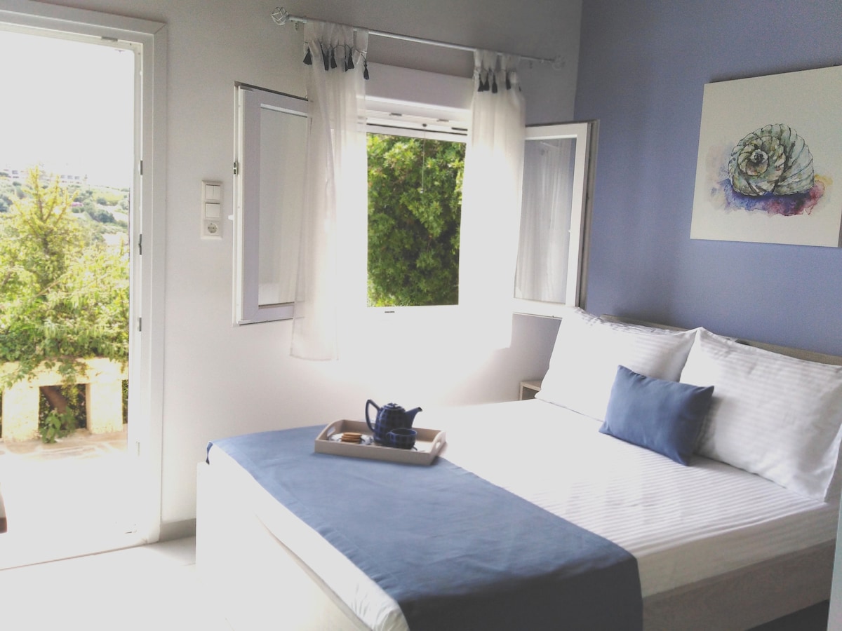 A cozy, boutique-style studio ideal for long stays on the island; with port, bus stop, beach, restaurants and shops just a couple of minutes walk away! Relax, fill up your batteries and enjoy the perfect balance between a comfortable modern setting and true, traditional hospitality of our home! The house can accommodate strictly two persons