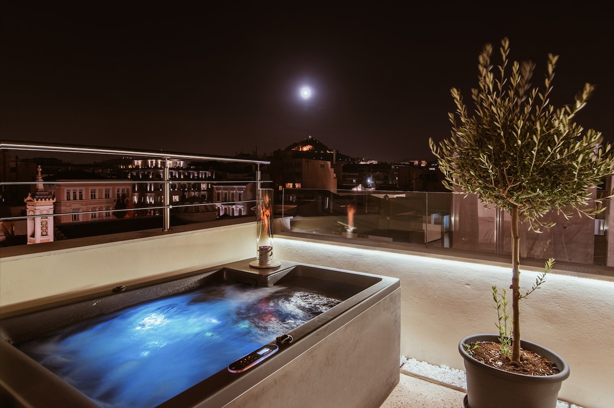 雅典卫城顶层公寓,带加热泳池和火坑