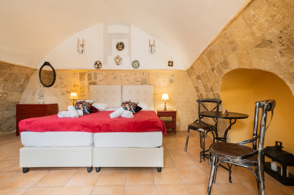 Archeological Room in a quiet neighborhood in the Old Town of Rhodes, newly renovated with private bathroom inside your Room, kitchen, A/C and Wi-Fi. Double or single beds is your choice. You also have access to our main terrace and garden. We are here in the Reception/Snack Bar from 07.00 - 22.00 every day. We have STORAGE and an Extra Bathroom/Shower that you can use. Night check in is possible.