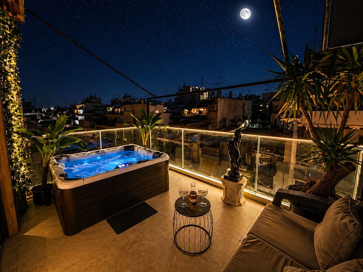 Artemis is a serene sanctuary nestled near the vibrant center of Athens. Perched on the 15th floor, designed with a minimalist aesthetic, it offers a breathtaking panorama of the cityscape, seamlessly blending urban energy with peaceful retreat. Equipped with everything you need for a comfortable and convenient stay, it features a luxurious sauna and jacuzzi, designed to soothe your body and rejuvenate your soul - offering a perfect escape from the hustle and bustle of daily life.