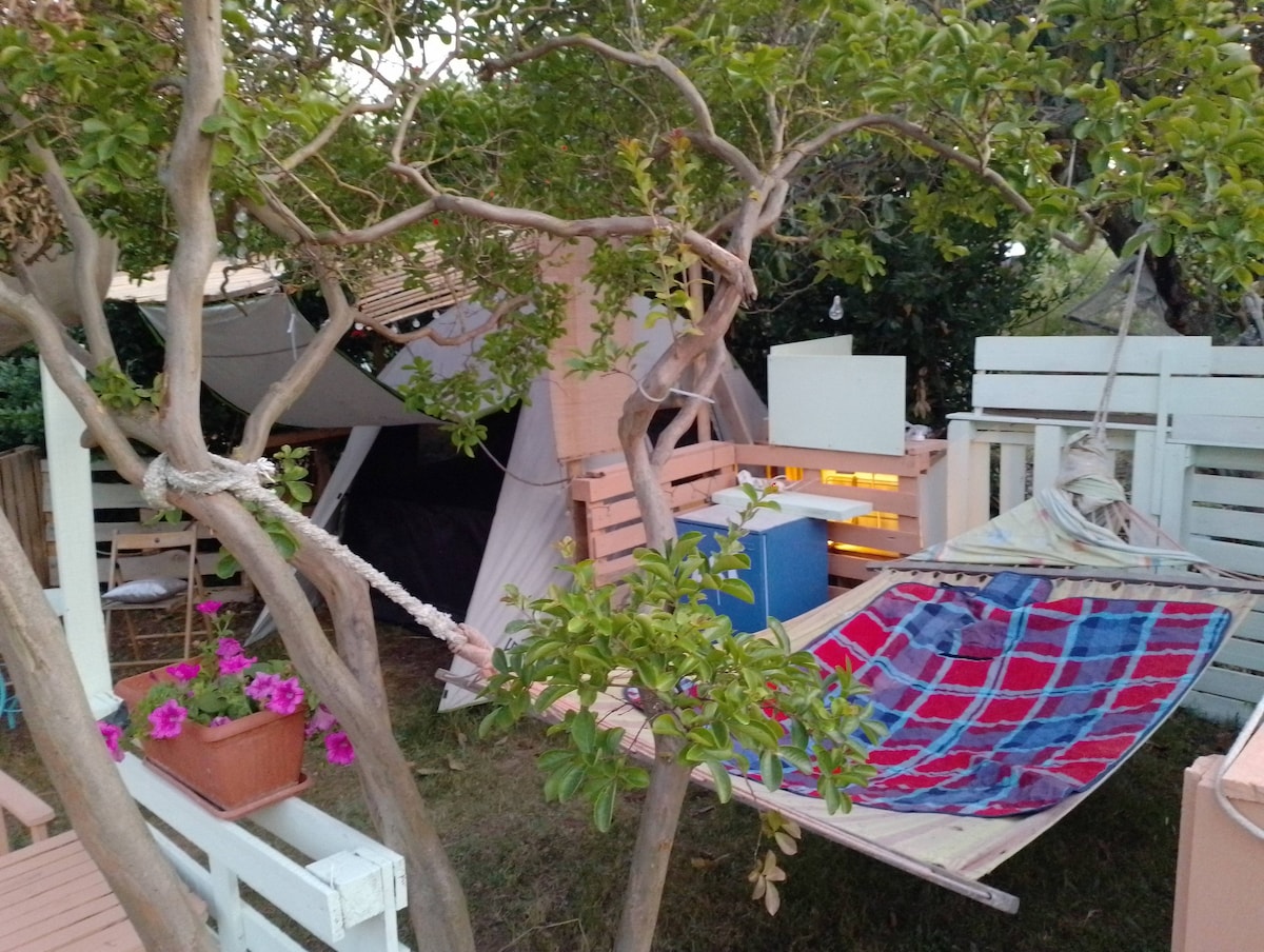 Απολαύστε τους ήχους της φύσης μένοντας σε αυτόν τον μοναδικό χώρο. Βρίσκεται ανάμεσα σε φυτά και δέντρα, προσφέροντας ένα μοναδικό καταφύγιο για ξεκούραση και ηρεμία. Οι σκηνές στον κήπο προσφέρουν εναλλακτική διαμονή με εξαιρετικά στρώματα, ενώ η καθαριότητα είναι άψογη. ιδιωτικη wc μπανιέρα,πληντηριο ρούχον εξωτερικές ντουζιέρες και μια κοινόχρηστη βεράντα με μαγευτική θέα στον ορίζοντα. Η θάλασσα είναι πολύ κοντά, ιδανική για βουτιές και χαλάρωση. Στον κήπο υπάρχουν αιώρες μπάρμπεκιου κτλ