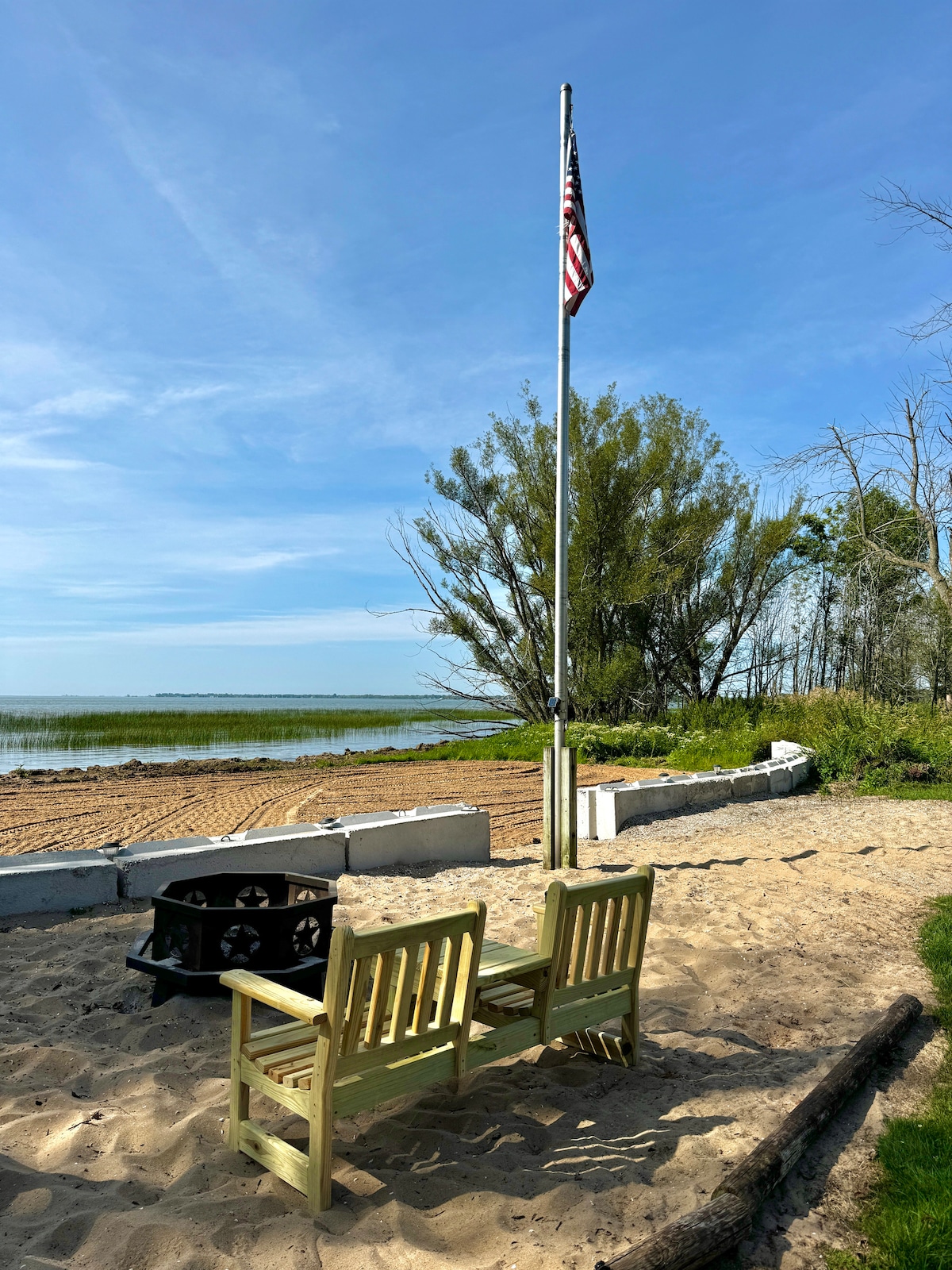This, 1000 square foot home, only 35' off the Bay of Green Bay, was built in 2018. The setting is picturesque and tranquil. The 1st floor of this 2 story home features a complete kitchen with a full size refrigerator, gas stove, dishwasher, microwave, dishes and cookware, a dining area, a half bath, and a living room that looks out to the Bay of Green Bay. The 2nd floor has 2 bedrooms both w/ queen beds. Plus a crib in one. The common space has a queen pullout. Full size bath w/ dbl sinks.