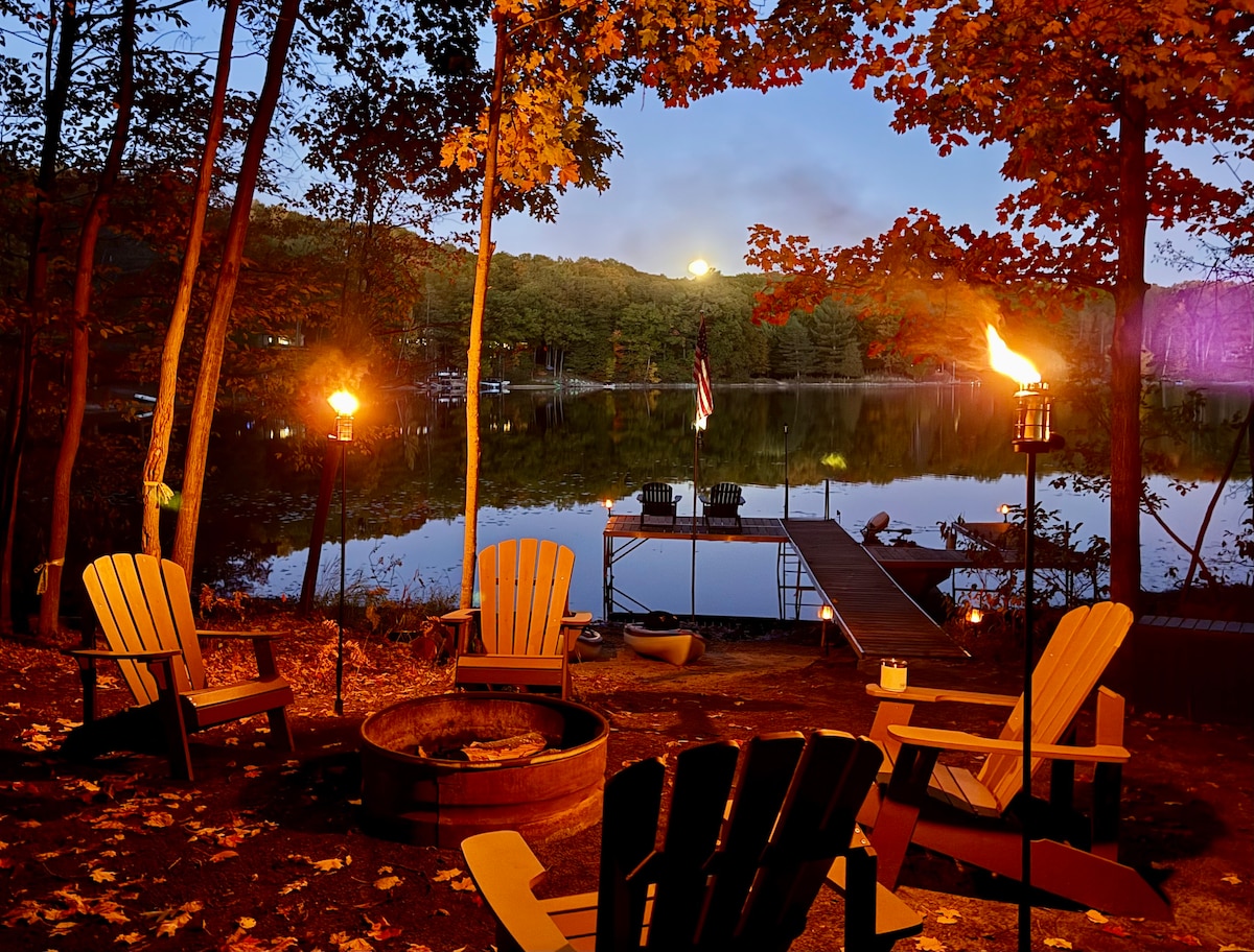 宁静的湖畔奢华。秋季色彩,靠近TC
