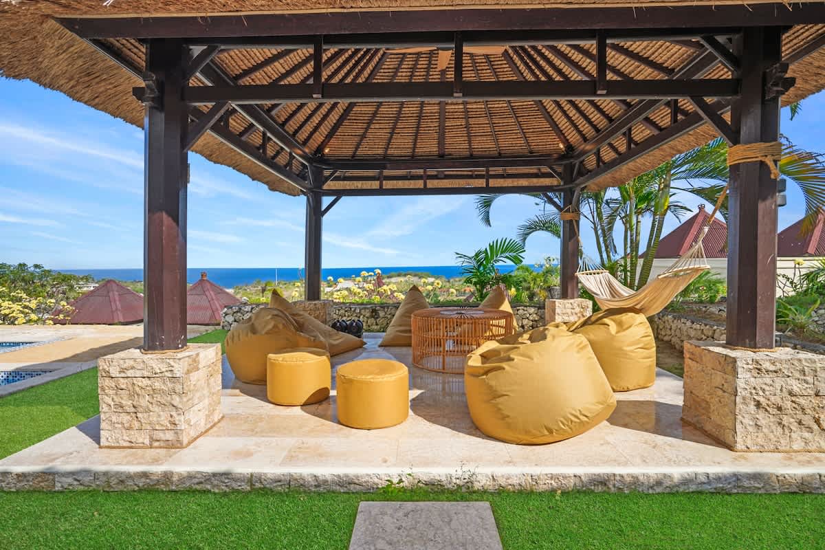 A luxury lifestyle cliff top ocean view pool villa, with 7 suites and studios, set in beautiful gardens, cascading ponds and a 135 m2 pool. Anything to celebrate? Our villa manager gladly assists you with special dinners, celebrations, transport, tours and outings , massages and our famous home cooked Balinese dinner, Balinese BBQ menus or our famous Whole Roasted Pig dinner More than 12 guests? check out additional guest fees or our Tirta Kencana in the same location - Airbnb listing 8284831