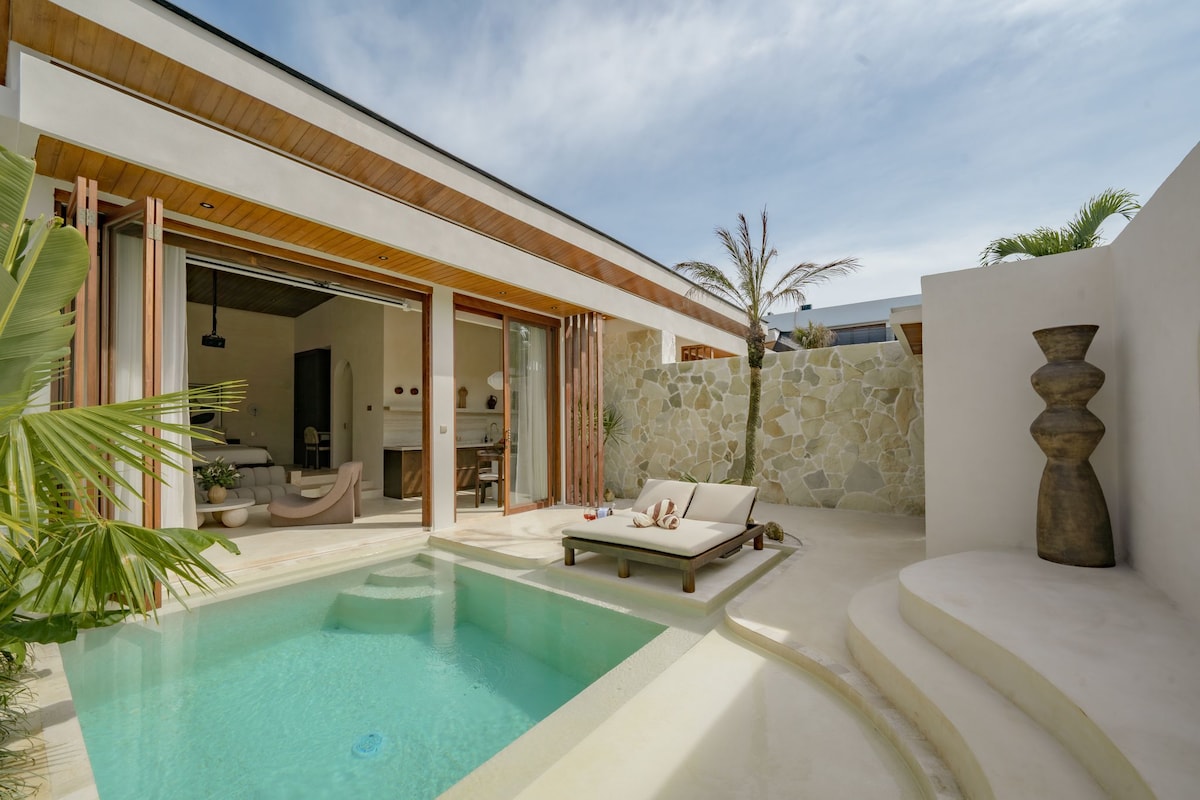 Discover a modern 1-bedroom retreat blending tropical charm with sleek design. Each villa features an open living area, a private pool, and floor-to-ceiling glass that invites natural light and garden views. Perfect for couples seeking style and comfort near Bingin’s beaches and cafés. Enjoy airy interiors, a fully equipped kitchen, and warm, natural finishes that define effortless Bali living in a peaceful setting.